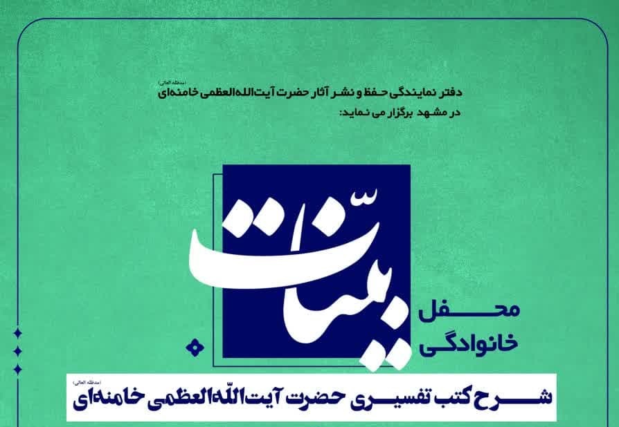 به گزارش خبرگزاری اهل بیت(ع) ـ ابنا ـ محفل خانوادگی «بیّنات»، شرح کتب تفسیری رهبر معظم انقلاب به همت دفتر نمایندگی حفظ و نشر آثار آیتاللهالعظمی خامنهای (مدّظلّه العالی) در مشهد برگزار میشود.