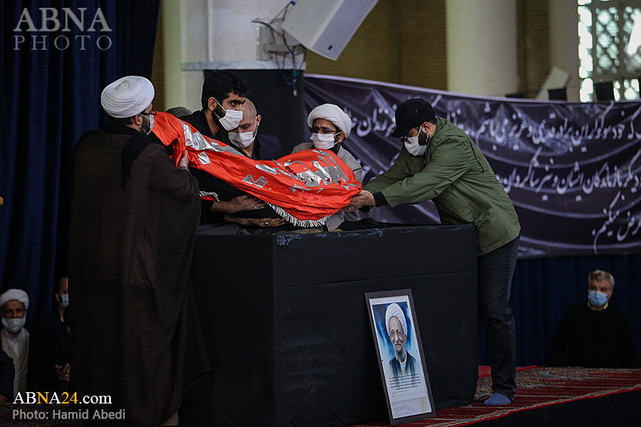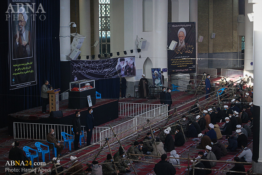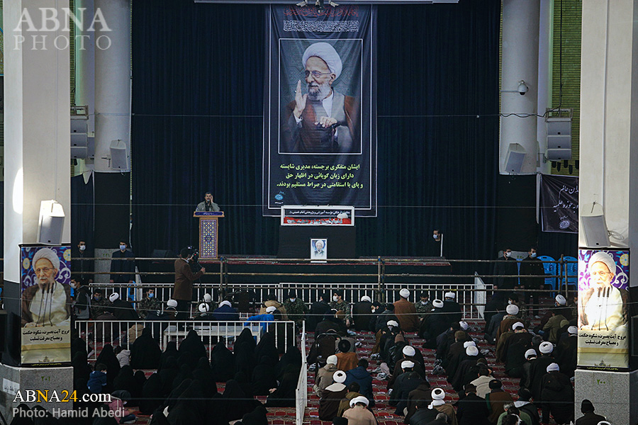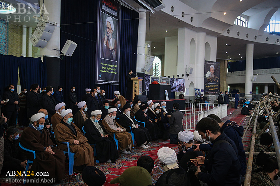 به گزارش خبرگزاری اهل بیت(ع) ـ ابنا ـ پیکر آیتالله «محمدتقی مصباح یزدی» عضو فقید مجلس خبرگان رهبری و رئیس اسبق شورای عالی مجمع جهانی اهل بیت(ع) امروز دوشنبه 15 دی 1399 در بارگاه ملکوتی کریمه اهلبیت(س) به خاک سپرده شد. مراسم تشییع و خاکسپاری پیکر آیت الله مصباح یزدی صبح امروز از مصلای قدس تا حرم مطهر حضرت معصومه(س) با حضور جمع زیادی از شاگردان، طلاب، عموم مردم و چهره های کشوری و لشکری برگزار شد. آیت الله العظمی «حسین نوری همدانی» از مراجع تقلید بر پیکر عضو فقید شورای عالی مجمع اقامه نماز کرد و بعد از آن پیکر وی در حرم مطهر به خاک سپرده شد. حضرات آیات «اختری»، «نواب»، «محمدی عراقی» و «رمضانی» اعضای شورای عالی و دبیرکل مجمع جهانی اهل بیت(ع) نیز در این مراسم حضور داشتند.