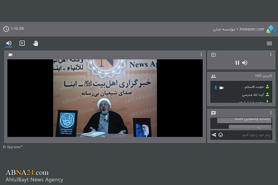 به گزارش خبرگزاری اهل بیت(ع) ـ ابنا ـ بیست و پنجمین پیش نشست علمی «همایش بین المللی حضرت ابوطالب(ع)؛ حامی پیامبر اعظم(ص)» شامگاه امروز جمعه 24 بهمن 1399 به صورت مجازی برگزار شد. در این نشست که به همت دبیرخانه همایش، میزبانی دفتر تبلیغات اسلامی استان یزد و همکاری خبرگزاری ابنا برپا گردید، جمعی از علماء و فضلای یزدی حضور داشتند. حجت الاسلام دکتر «محقق زارع خورمیزی» دبیری این نشست علمی را بر عهده داشت و حجت الاسلام والمسلمین «محمدمهدی صباحی کاشانی» رئیس مؤسسه تحقیقات و نشر حضرت ابوطالب(ع) و حجت الاسلام والمسلمین «سید محمدکاظم مدرسی» از اساتید عالی حوزه علمیه در آن به ارائه بحث پرداختند. حجت الاسلام «آرزومندی» مدیریت بیست و پنجمین پیش نشست علمی «همایش بین المللی حضرت ابوطالب(ع)؛ حامی پیامبر اعظم(ص)» را بر عهده داشت. این نشست علاوه بر محیط اسکای روم، از صفحه «مجالس مجازی اهل بیتی» در شبکه اجتماعی اینستاگرام نیز به شکل زنده پخش گردید.