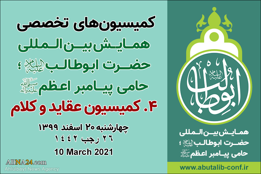 به گزارش خبرگزاری اهلبیت(ع) ـ ابنا ـ چهارمین کمیسیون «همایش بین المللی حضرت ابوطالب(ع)؛ حامی پیامبر اعظم(ص)» با عنوان کمیسیون «عقاید و کلام» عصر دیروز چهارشنبه 20 اسفند 1399 در تالار شهید صدر در مجتمع آموزش عالی امام خمینی(ره) برگزار شد. این کمیسیون با ریاست حجت الاسلام والمسلمین «صادق اخوان»، داوری حجت الاسلام والمسلمین «رضا برنجکار» و دبیری حجت الاسلام و المسلمین «محمدرضا آل ایوب» برپا گردید.