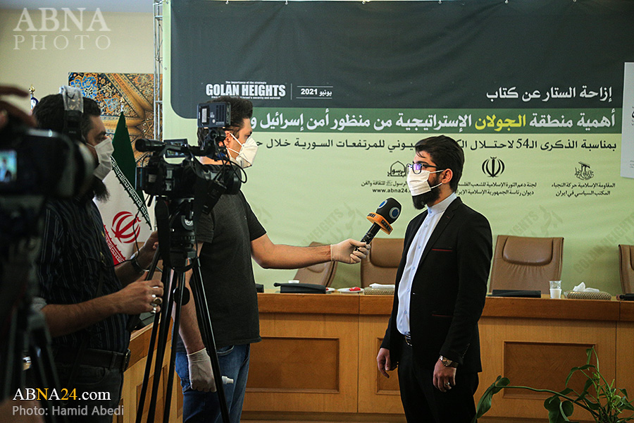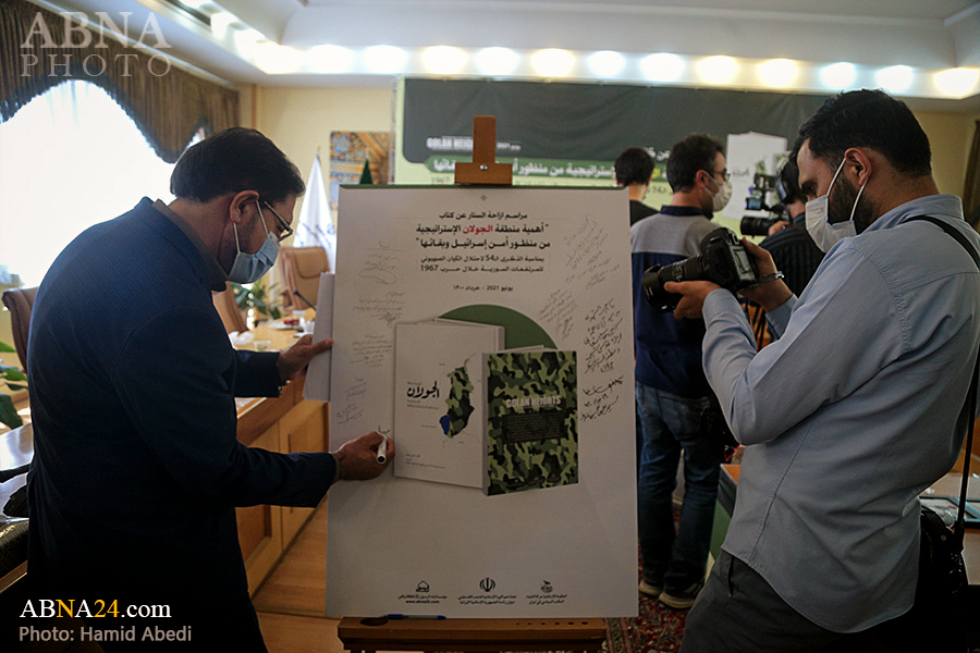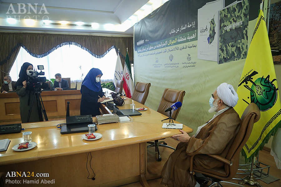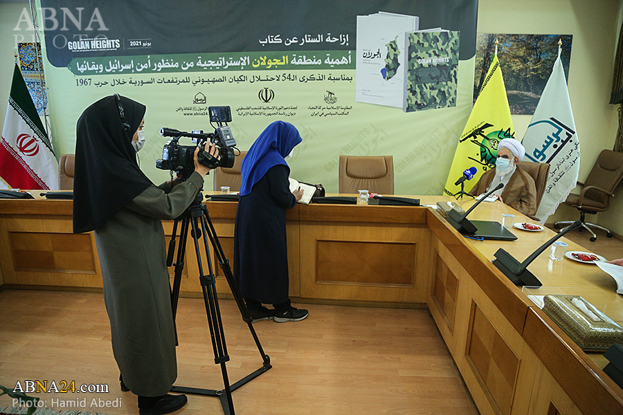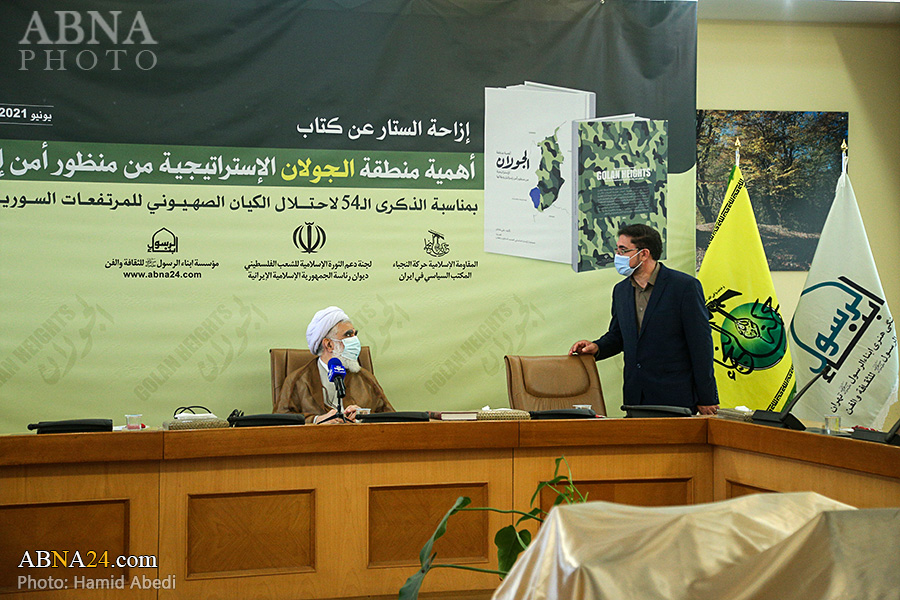 به گزارش خبرگزاری اهل‌بیت(ع) ـ ابنا ـ همزمان با پنجاه و چهارمین سالگرد اشغال "بلندی های جولان" به وسیله رژیم صهیونیستی، کتاب "اهمیت منطقه استراتژیک جولان از نگاه امنیت و بقای اسرائیل" (نام اصلی به زبان عربی: أهمیة منطقة الجولان الإستراتیجیة من منظور أمن إسرائیل وبقائها) با حضور شخصیت های فرهنگی و سیاسی رونمایی گردید. در مراسم رونمایی از این کتاب که صبح دیروز چهارشنبه 19 خرداد 1400 در ساختمان کوثر نهاد ریاست جمهوری اسلامی ایران برگزار شد، آیت الله «محمدحسن اختری» رییس شورای عالی مجمع جهانی اهل بیت(ع) و کمیته حمایت از انقلاب اسلامی مردم فلسطین، سردار سرتیپ «حسین دهقان» مشاور فرمانده معظم کل قوا در صنایع دفاعی، آقای «صلاح الزواوی» شیخ السفراء و سفیر کشور فلسطین در جمهوری اسلامی ایران و دکتر «شفیق دیوب» سفیر جمهوری عربی سوریه در ایران به ایراد سخن پرداختند. حجت الاسلام «حسینی عارف» مدیر عامل مؤسسه ابناء الرسول(ص) و آقای «علی شاکر» مؤلف کتاب نیز گزارش کوتاهی درباره آن ارائه دادند. همچنین تعدادی از شخصیت های برجسته سیاسی و فعالان فرهنگی مرتبط با مقاومت - همچون «میرمسعود حسینیان» دستیار وزیر و مدیرکل خاورمیانه و شمال آفریقای وزارت امور خارجه جمهوری اسلامی ایران، «خالد قدومی» نماینده جنبش حماس در ایران، «ناصر ابوشریف» نماینده جهاد اسلامی فلسطین در ایران، «ایرج سبقتی» مدیر عامل خبرگزاری قدس و «مهدی شکیبایی» قائم مقام جمعیت دفاع از ملت فلسطین - نیز در این مراسم حضور داشتند. در پایان این مراسم از کتاب "اهمیت منطقه استراتژیک جولان از نگاه امنیت و بقای اسرائیل" به دست آقایان اختری، دهقان، الزواوی، دیوب، رمضانخانی، حسینی عارف، قدومی، ابوشریف و شاکر رونمایی شد. تصاویر زیر حواشی و نیز فعالیت های رسانه ای این مراسم را نشان می دهد.