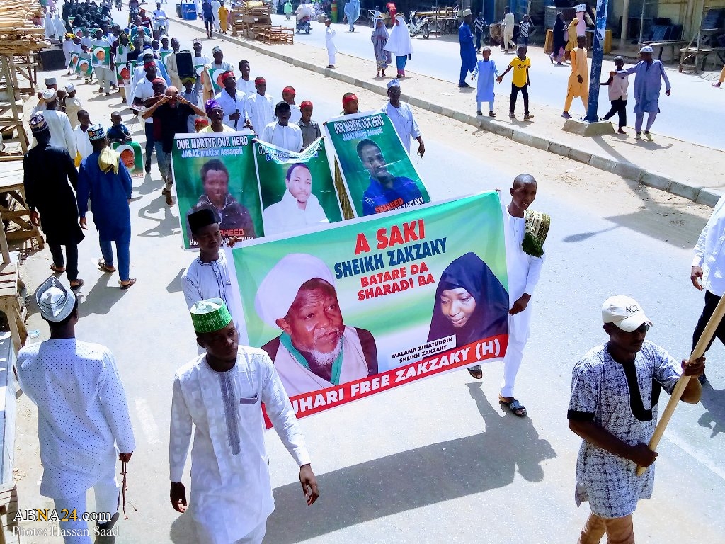 به گزارش خبرگزاری اهل بیت(ع) ـ ابنا ـ طرفداران رهبر جنبش اسلامی نیجریه در شهر «کورا نامودا» در ایالت «زامفرا» در کشور نیجریه، با برپایی تظاهراتی خواستار آزادی شیخ ابراهیم زاکزاکی و همسرش شدند.