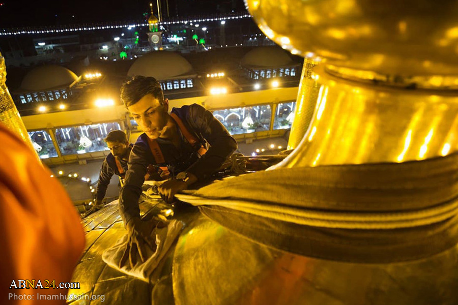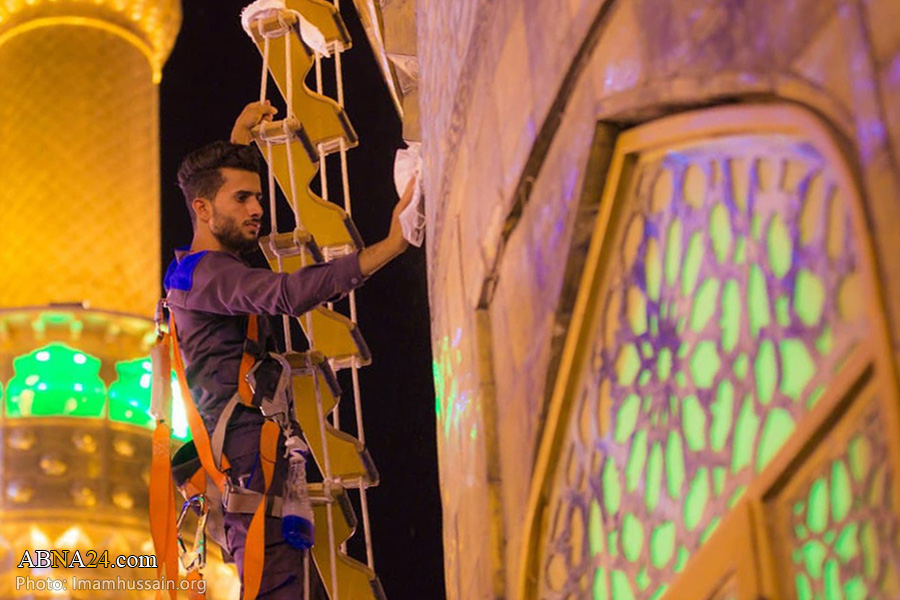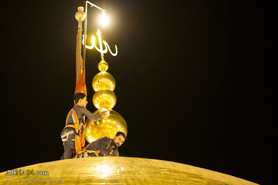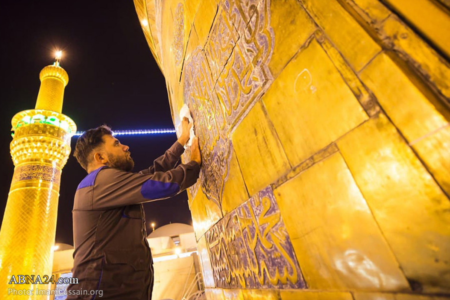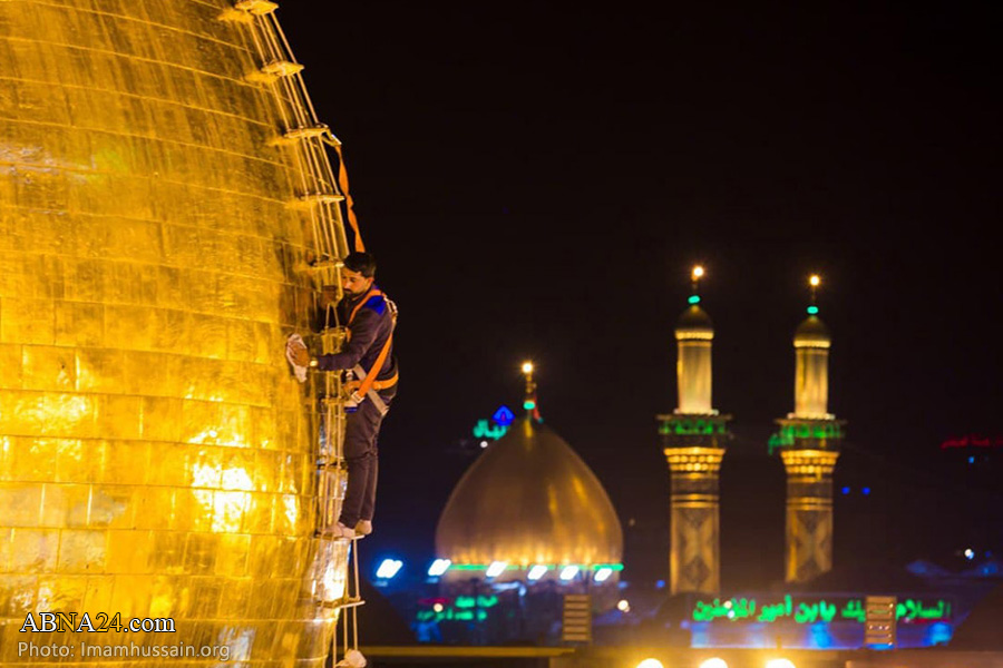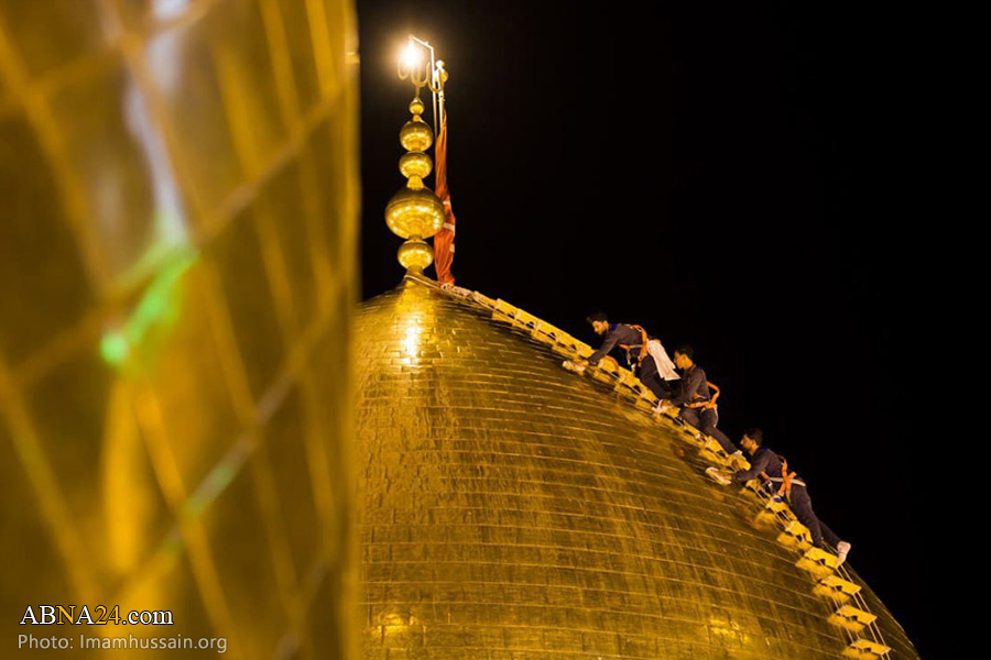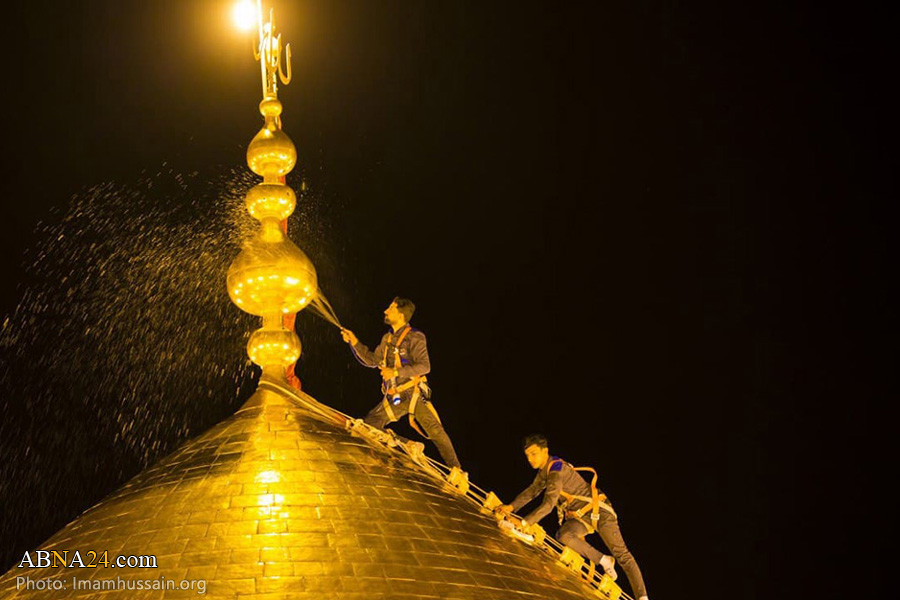 به گزارش خبرگزاری اهلبیت(ع) ـ ابنا ـ گنبد مطلای حرم امام حسین (ع) شستوشو شد تا گنبد برای برپایی مراسم تعویض پرچم حرم سیدالشهدا (ع) همزمان با شب اول محرم آماده شود.