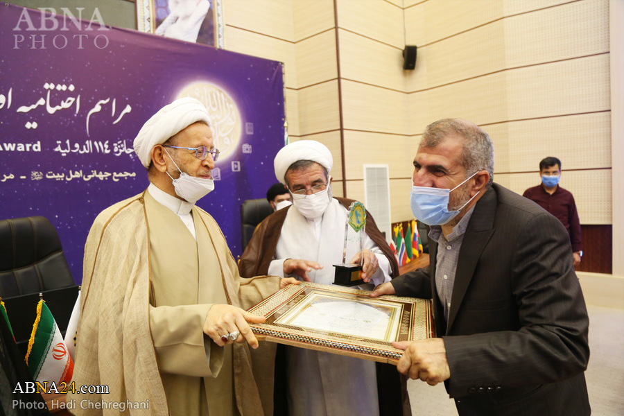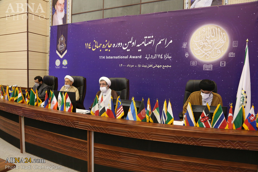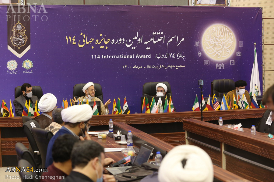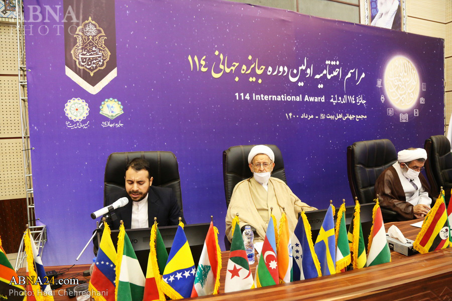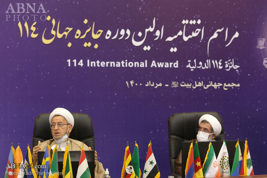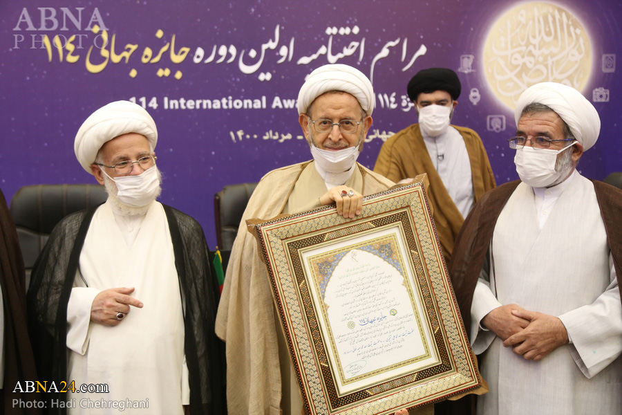 به گزارش خبرگزاری اهل بیت(ع) ـ ابنا ـ مراسم اختتامیه اولین دوره "جایزه جهانی ۱۱۴" عصر امروز دوشنبه ۱۸ مرداد ۱۴۰۰ به شکل حضوری و مجازی با رعایت پروتکل های بهداشتی، در محل سالن همایش های مجمع جهانی اهل بیت(ع) در قـم برپا گردید. نخستین دوره "جایزه جهانی ۱۱۴" توسط مجمع جهانی اهل‌بیت(ع) در ماه مبارک رمضان گذشته (١٤٤٢ ق. - ۱۴۰۰ ش. - 2021 م.) فراخوان شد و به انتخاب برترین مبلغان، آثار و فعالیت‌های قرآنی شیعیان در سراسر جهان اختصاص داشت.