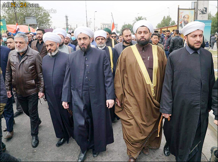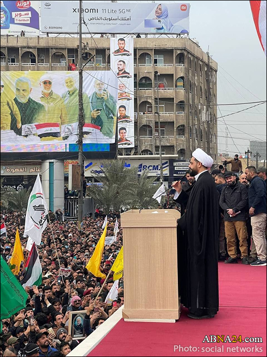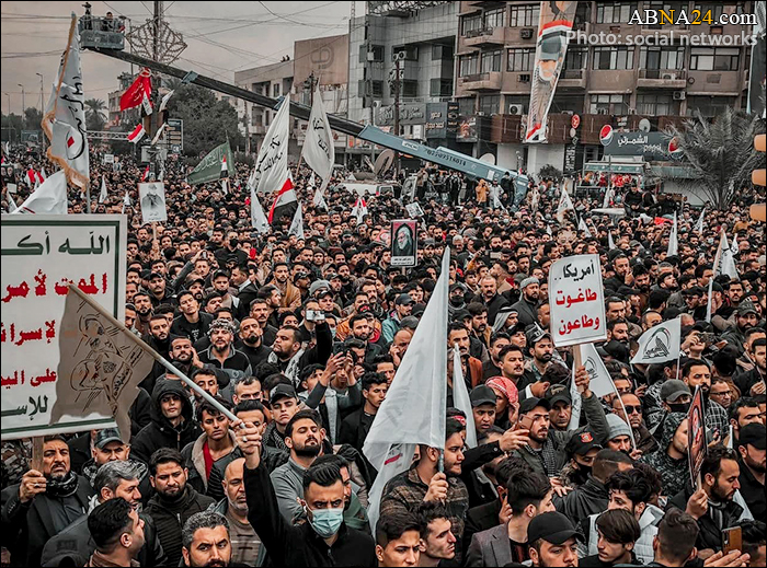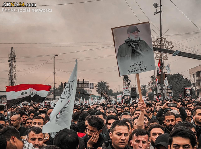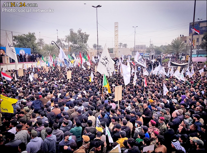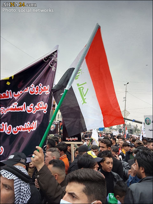 به گزارش خبرگزاری اهلبیت(ع) ـ ابنا ـ دهها هزار نفر از مردم شیعه، سنی، کرد، ترکمن و ایزدی عراق به مناسبت دومین سالروز شهادت فرماندهان مقاومت اسلامی، شهیدان حاج «قاسم سلیمانی» و حاج «ابومهدی المهندس» تظاهرات بزرگی در مرکز شهر "بغداد" برگزار کردند. آنها در این تظاهرات، با در دست گرفتن تصاویر شهداء و به اهتزار درآوردن پرچم های عراق، ایران، الحشد الشعبی و سپاه پاسداران، علیه ایالات متحده شعار دادند و خواستار خروج کامل نظامیان آمریکایی از کشورشان شدند. شایان ذکر است شهید سلیمانی و شهید المهندس که نقش اصلی را در شکست دادن تروریست های "داعش" و نجات مردم عراق داشتند، روز 13 دی 1398 ش. به دستور «ترامپ» رییس جمهور جنایتکار آمریکا در بغداد به شهادت رسیدند.