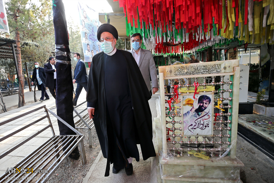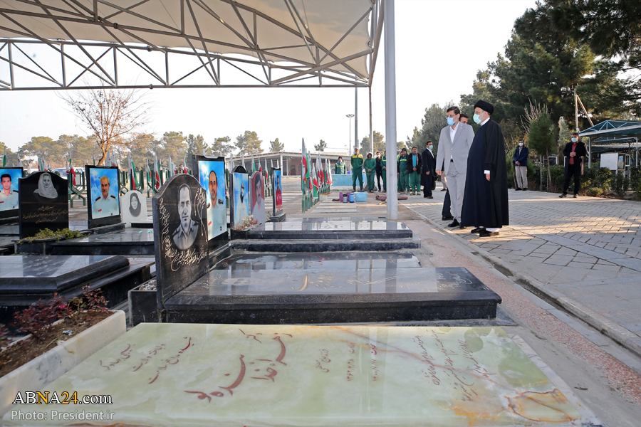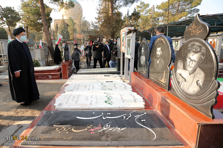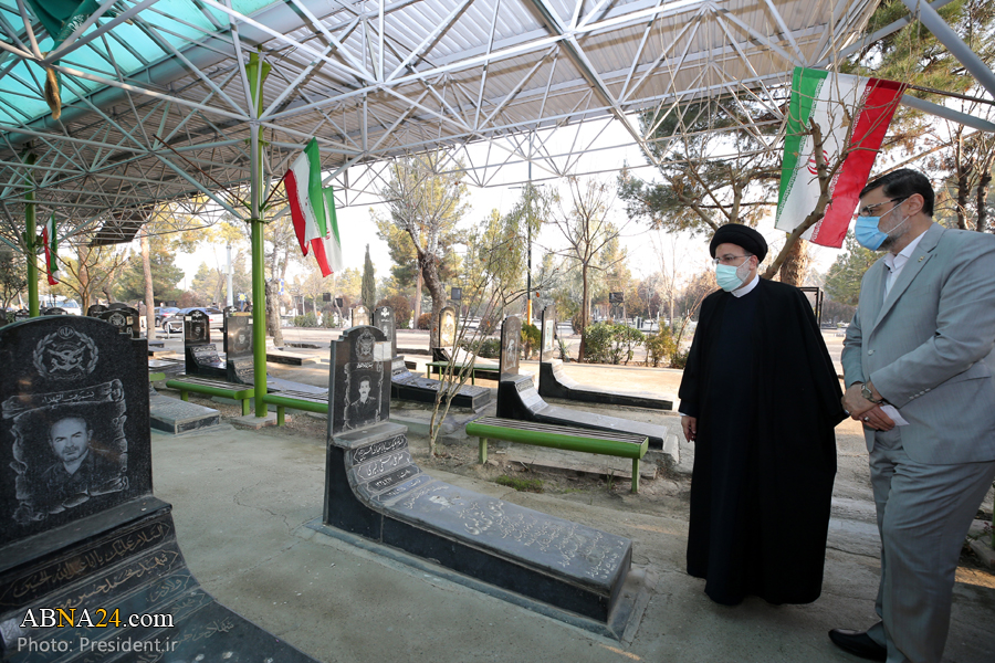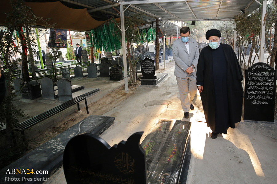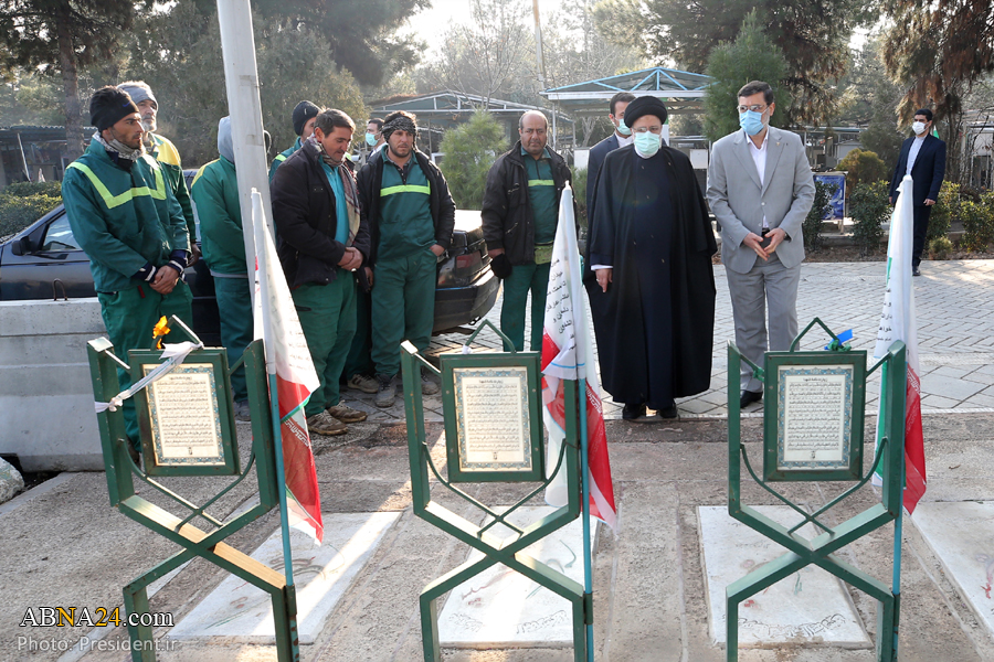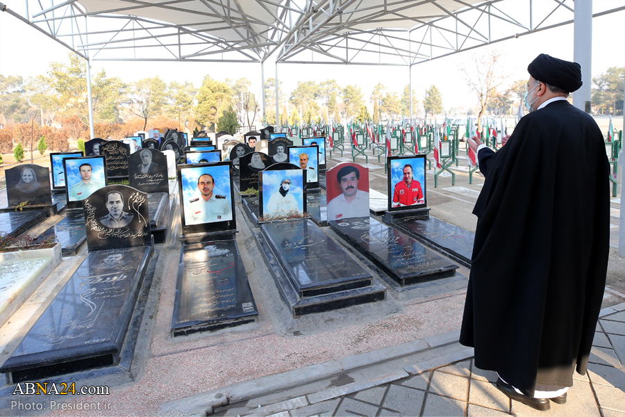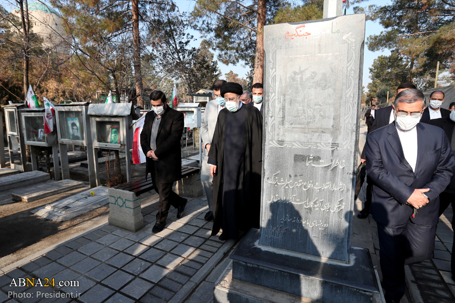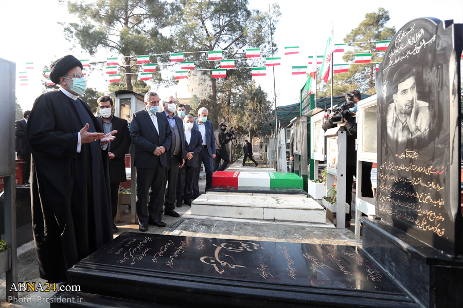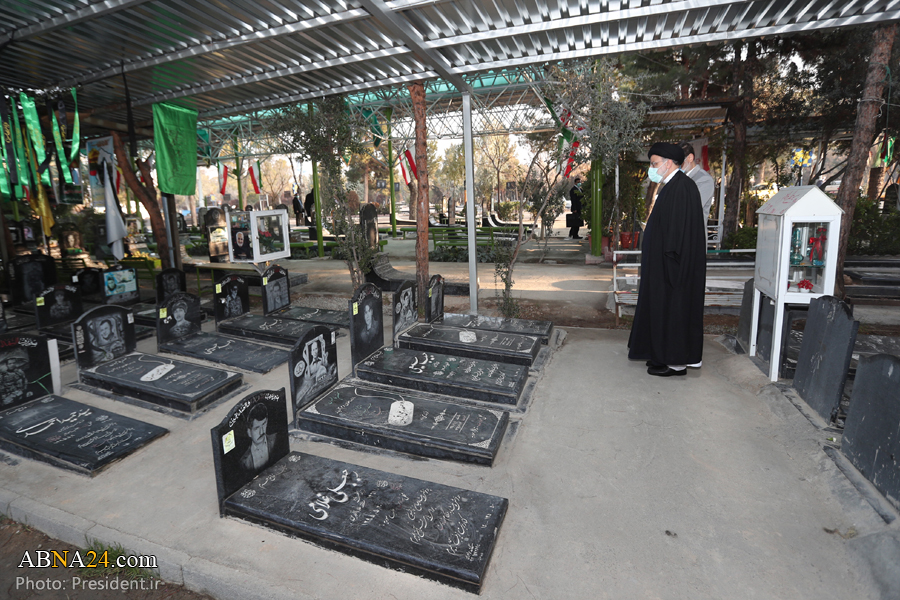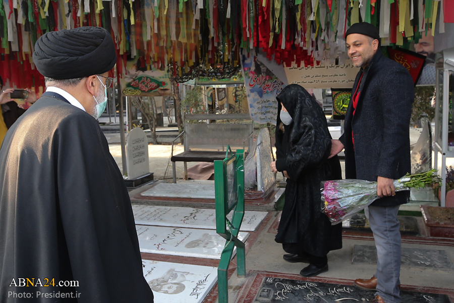 به گزارش خبرگزاری اهل بیت(ع) ـ ابنا ـ حجت الاسلام و المسلمین دکتر سید ابراهیم رئیسی رئیس جمهوری اسلامی ایران پس از حضور در مراسم تجدید میثاق با آرمانهای امام راحل در بهشت زهرا بر مزار شهدای انقلاب اسلامی حضور یافت. حضور و قرائت فاتحه بر سر آرامگاه شهدای صداوسیما و رسانه (هواپیمای c۱۳۰)، شهدای حادثه تروریستی حمله داعش به مجلس، شهیدان حادثه منا، شهدای حادثه هواپیمای اوکراینی، شهدای مدافعان حرم و فاطمیون، شهیدان مدافعان سلامت و شهدای آتش نشان دیگر برنامه آیت الله رئیسی بود. رئیس جمهور همچنین بر مزار شهدای گمنام مدفون در بهشت زهرا هم حضور یافته و ضمن قرائت فاتحه، نام و یاد ایشان را گرامی داشت.