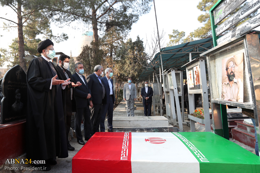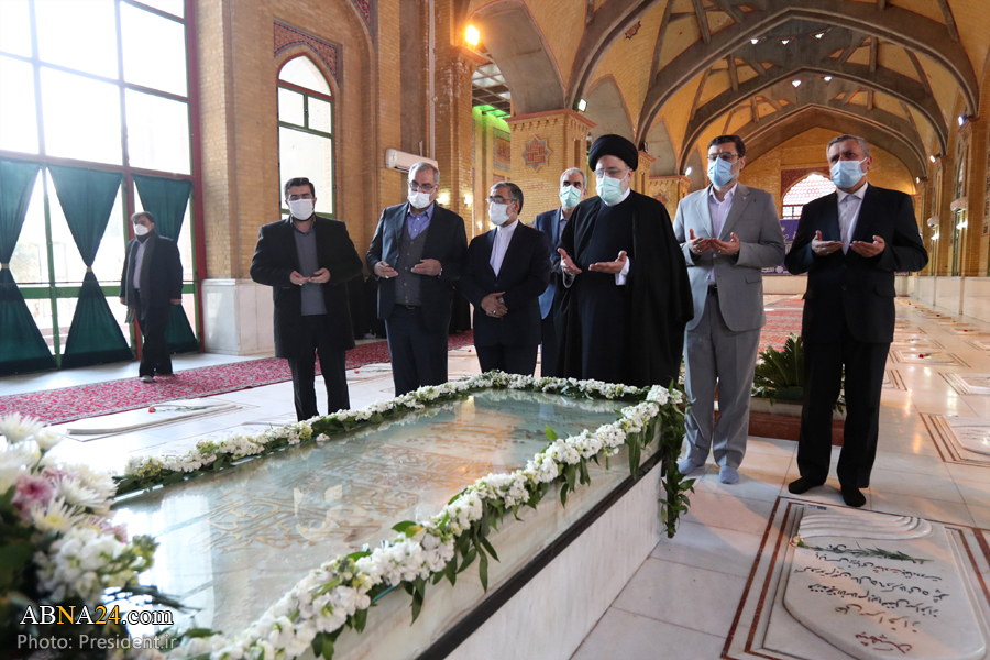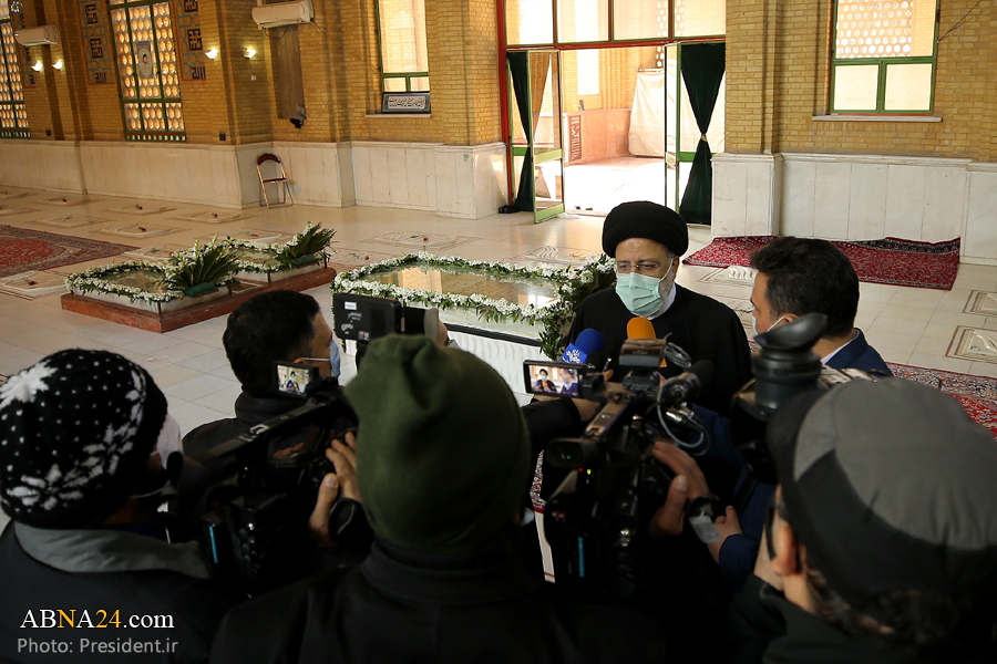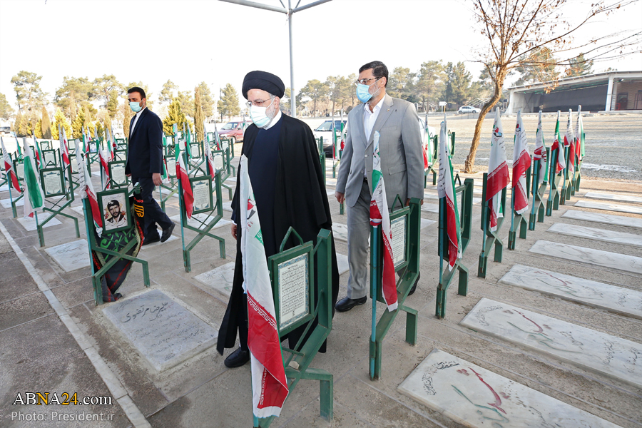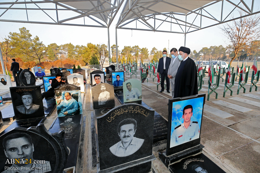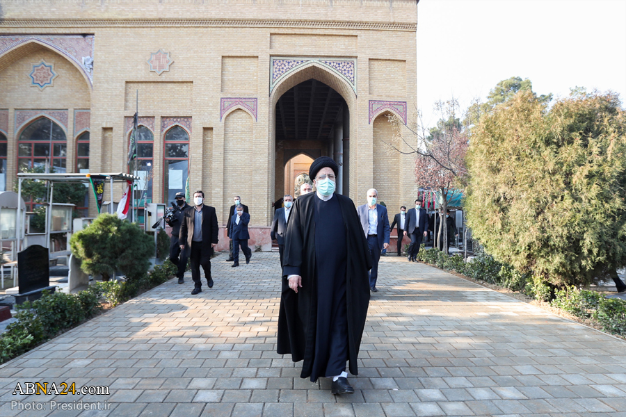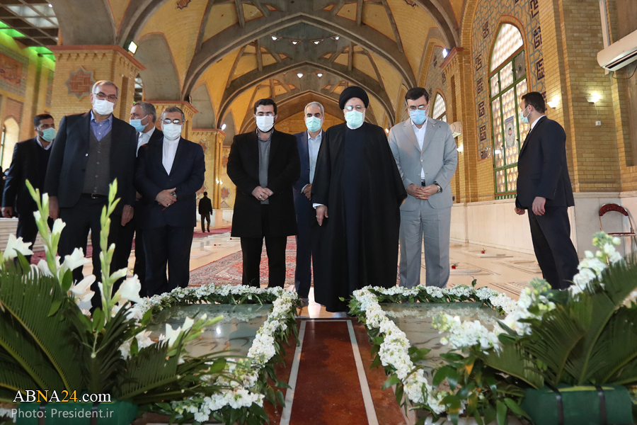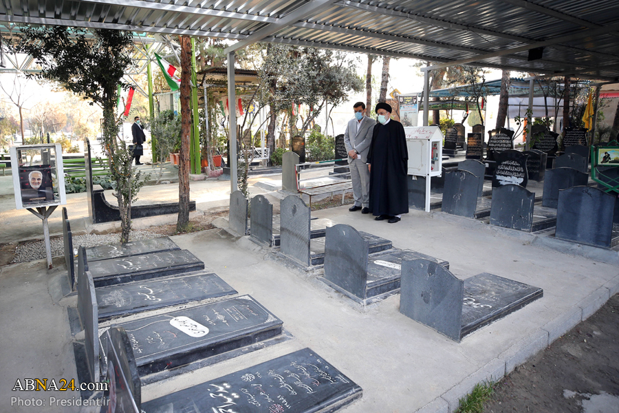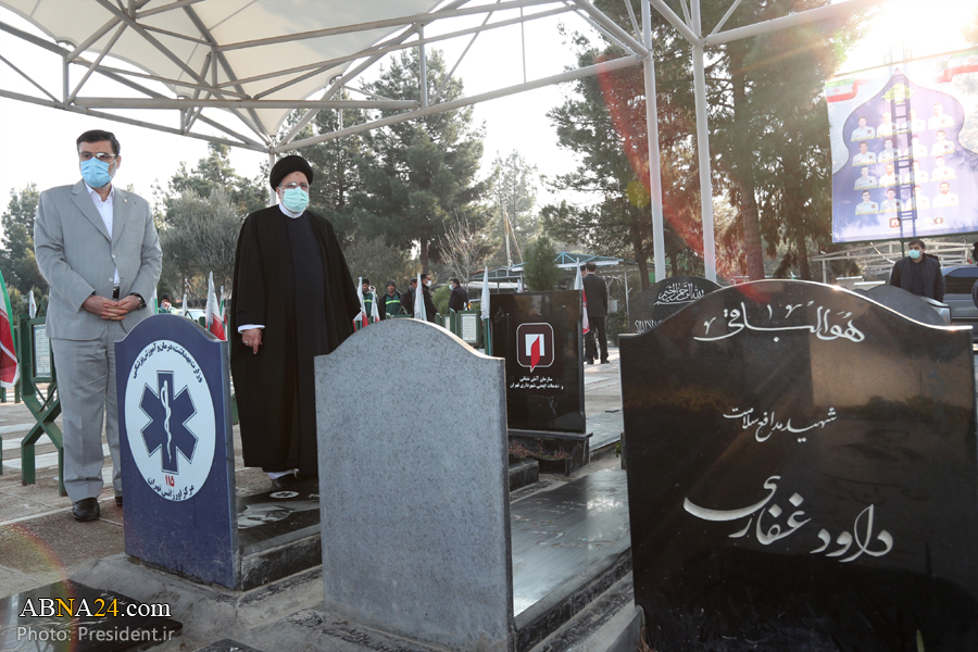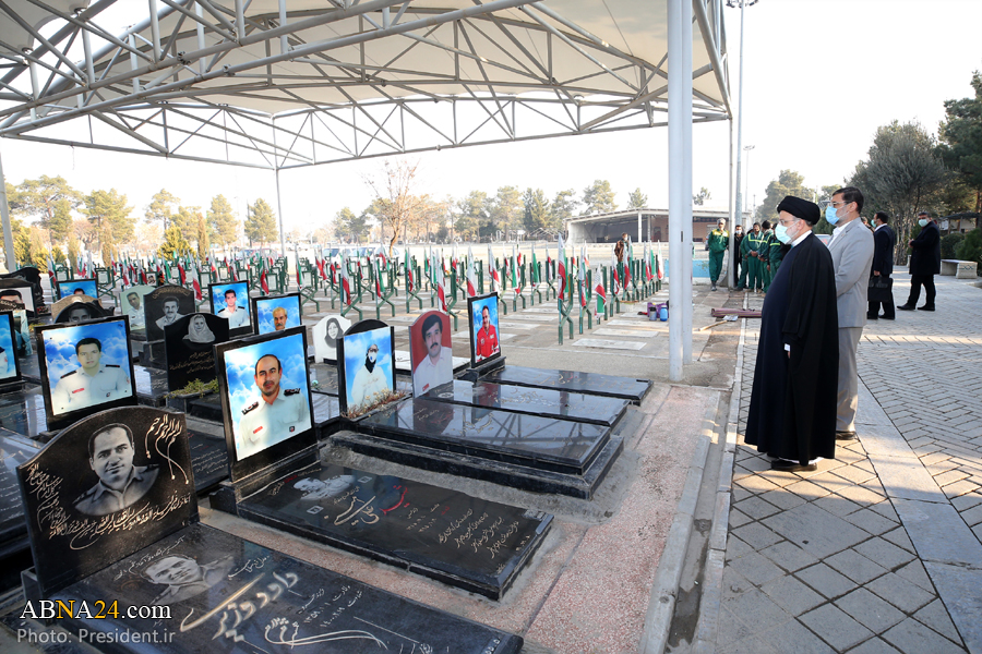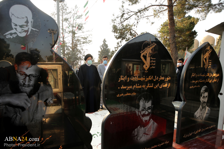 به گزارش خبرگزاری اهل بیت(ع) ـ ابنا ـ حجت الاسلام و المسلمین دکتر سید ابراهیم رئیسی رئیس جمهوری اسلامی ایران پس از حضور در مراسم تجدید میثاق با آرمانهای امام راحل در بهشت زهرا بر مزار شهدای انقلاب اسلامی حضور یافت. حضور و قرائت فاتحه بر سر آرامگاه شهدای صداوسیما و رسانه (هواپیمای c۱۳۰)، شهدای حادثه تروریستی حمله داعش به مجلس، شهیدان حادثه منا، شهدای حادثه هواپیمای اوکراینی، شهدای مدافعان حرم و فاطمیون، شهیدان مدافعان سلامت و شهدای آتش نشان دیگر برنامه آیت الله رئیسی بود. رئیس جمهور همچنین بر مزار شهدای گمنام مدفون در بهشت زهرا هم حضور یافته و ضمن قرائت فاتحه، نام و یاد ایشان را گرامی داشت.
