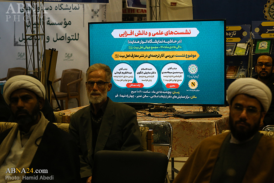 به گزارش خبرگزاری اهل بیت(ع) ـ ابنا ـ در حاشیه برگزاری نمایشگاه «انوار هدایت»، به همت خبرگزاری ابنا و با مشارکت اداره ترجمه مجمع جهانی اهل‌بیت(ع)، نشست «بررسی آثار ترجمه ای در نشر معارف اهل بیت(ع)» پیش از ظهر امروز پنج شنبه ـ 15 دی 1401 ـ در مرکز همایش های دفتر تبلیغات اسلامی حوزه علمیه قم، برگزار شد.