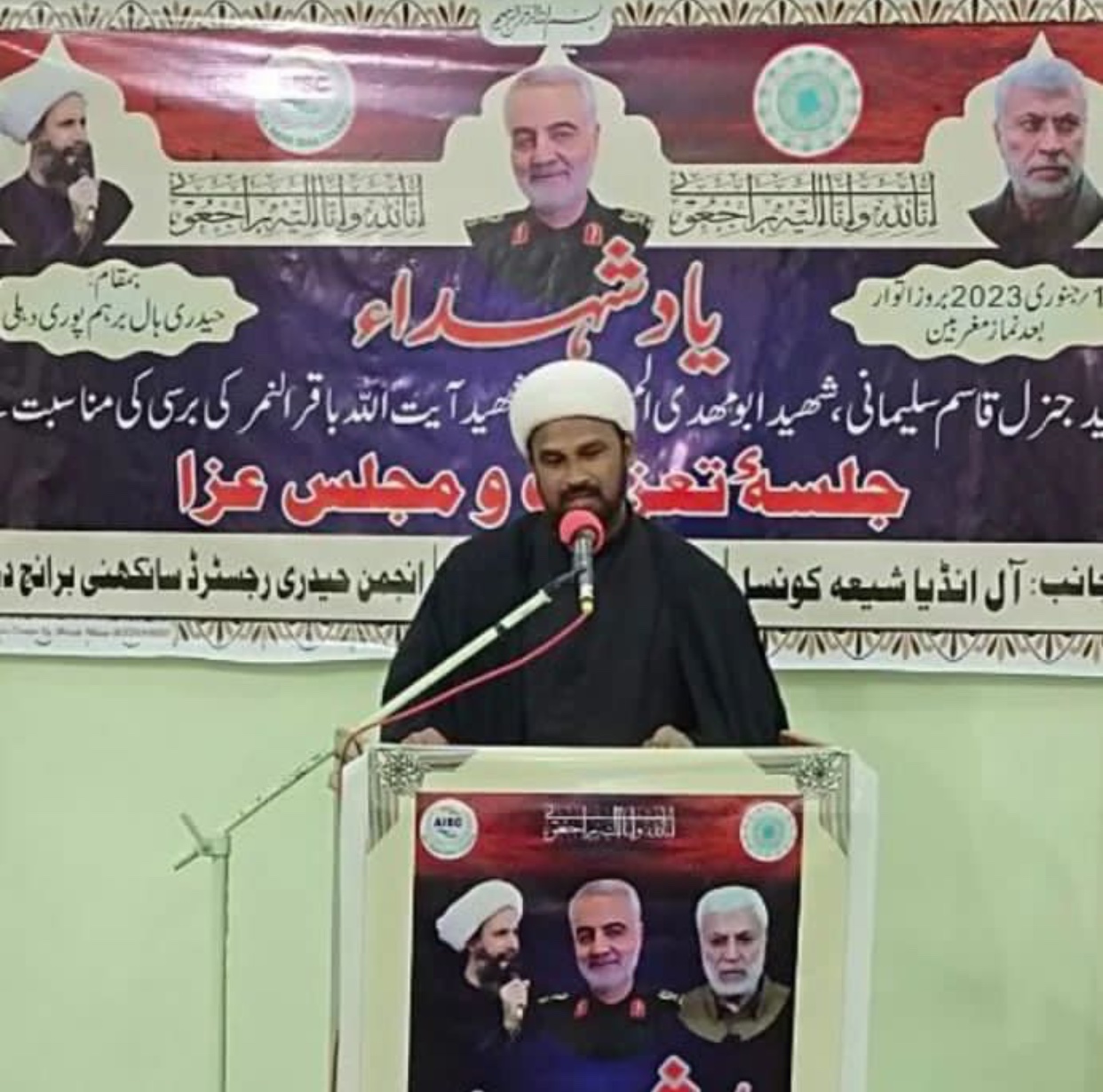 به گزارش خبرگزاری اهل بيت (ع) ـ ابنا ـ مراسم گراميداشت شهیدان سپهبد حاج قاسم سلیمانی فرمانده پیشین نیروی قدس سپاه پاسداران انقلاب اسلامی و حاج ابو مهدی المهندس معاون سازمان الحشد الشعبی عراق و شهید آیت الله نمر باقر النمر روحانی شیعه اهل عربستان و منتقد حکومت آل سعود توسط «مجمع اهل بيت (ع) هندوستان» با حضور جمعی از شيعيان و با سخنرانی حجج اسلام آقايان سيد جلال حيدر نقوی، دبيركل مجمع مزبور، سيد محسن نقوی، رئيس جامعه شهید رابع برگزار شد.