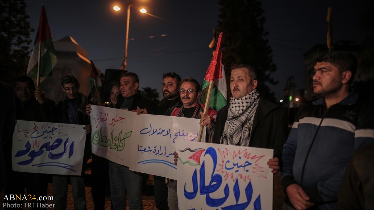 به گزارش خبرگزاری اهل بیت(ع) ـ ابنا ـ در پی حمله صهیونیست ها به اردوگاه جنین و شهادت ۹ فلسطینی، مردم فلسطین در غزه علیه جنایات رژیم صهیونیستی تظاهرات کردند.