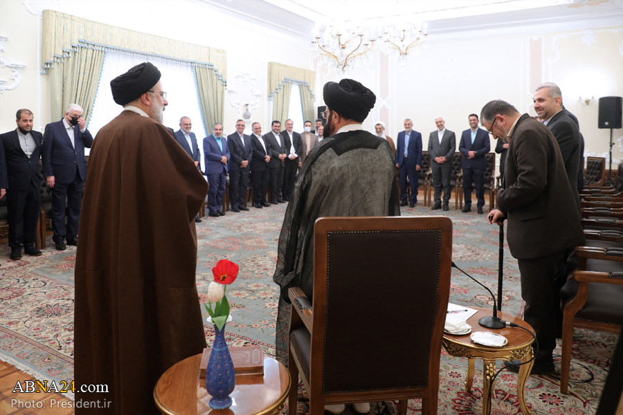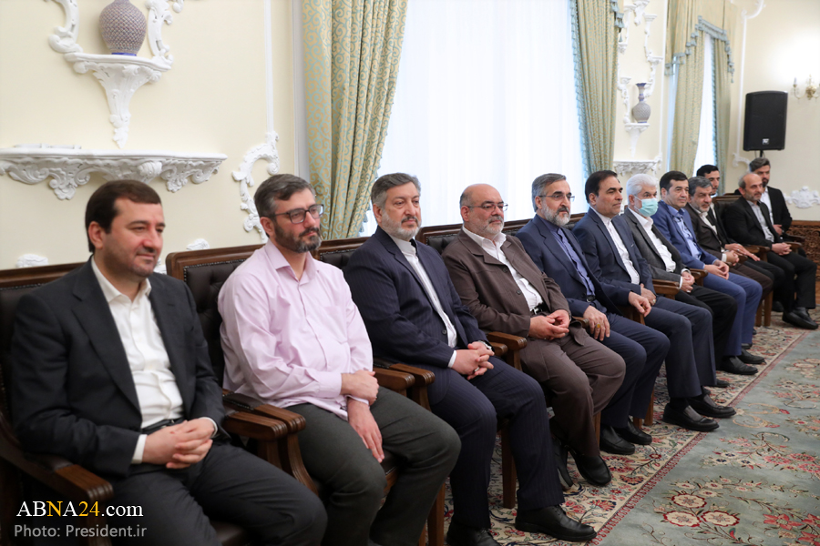 به گزارش خبرگزاری اهل بیت(ع) ـ ابنا ـ صدها نفر از کارگزاران نظام اجرایی و مقامات لشکری و کشوری، شامل وزرا و معاونین و روسای سازمان‌ها، جمعی از نمایندگان مجلس شورای اسلامی و معاونین و مدیران دستگاه قضایی، فرماندهان نیروهای مسلح، مسئولان نهادهای انقلابی، مدیران ارشد شهرداری تهران و رسانه ملی، به مناسبت فرا رسیدن عید نوروز و ماه مبارک رمضان، با حضور در نهاد ریاست جمهوری با حجت الاسلام و المسلمین دکتر سید ابراهیم رئیسی رئیس جمهوری اسلامی ایران، دیدار و سال نو را تبریک گفتند.