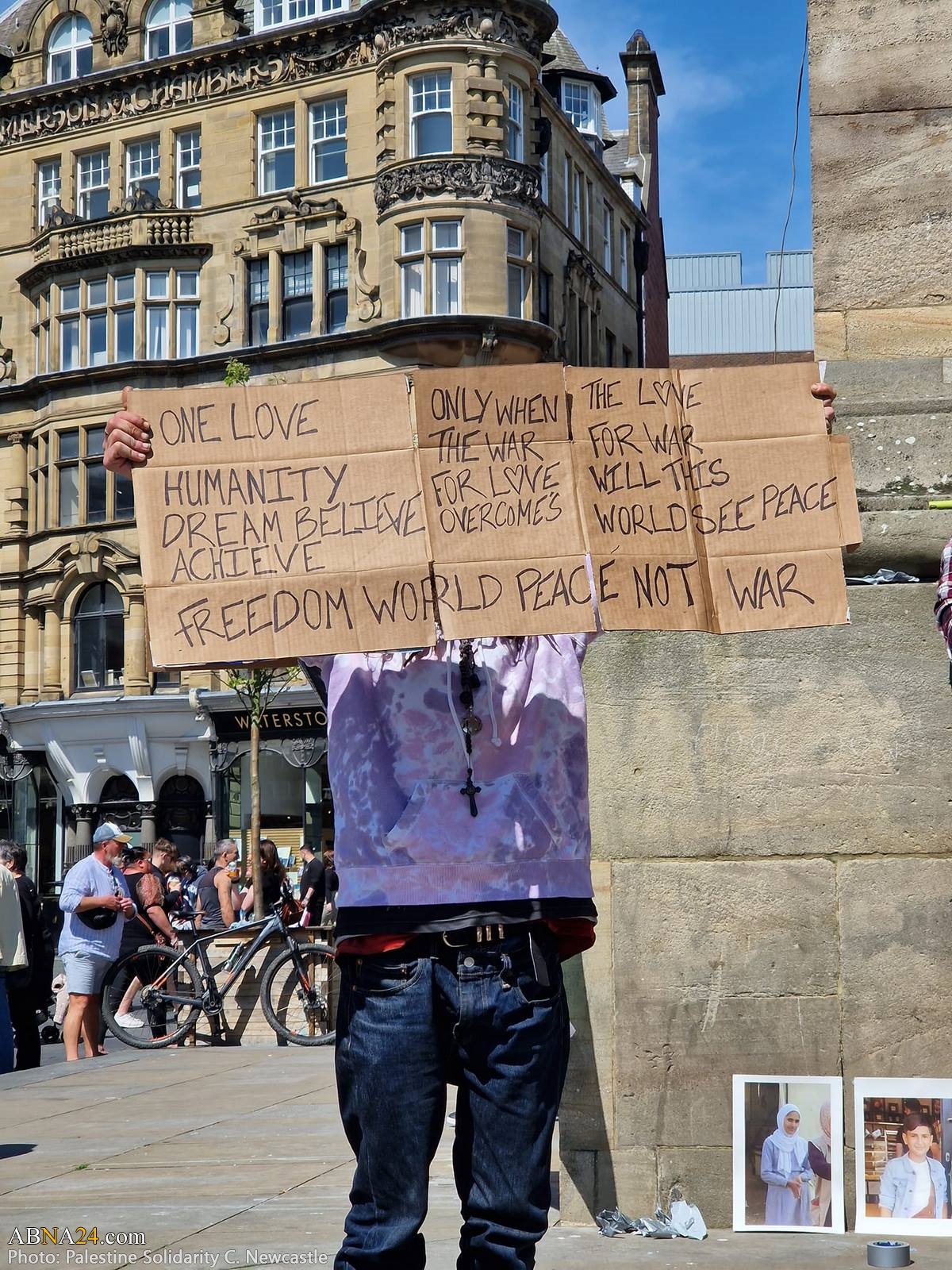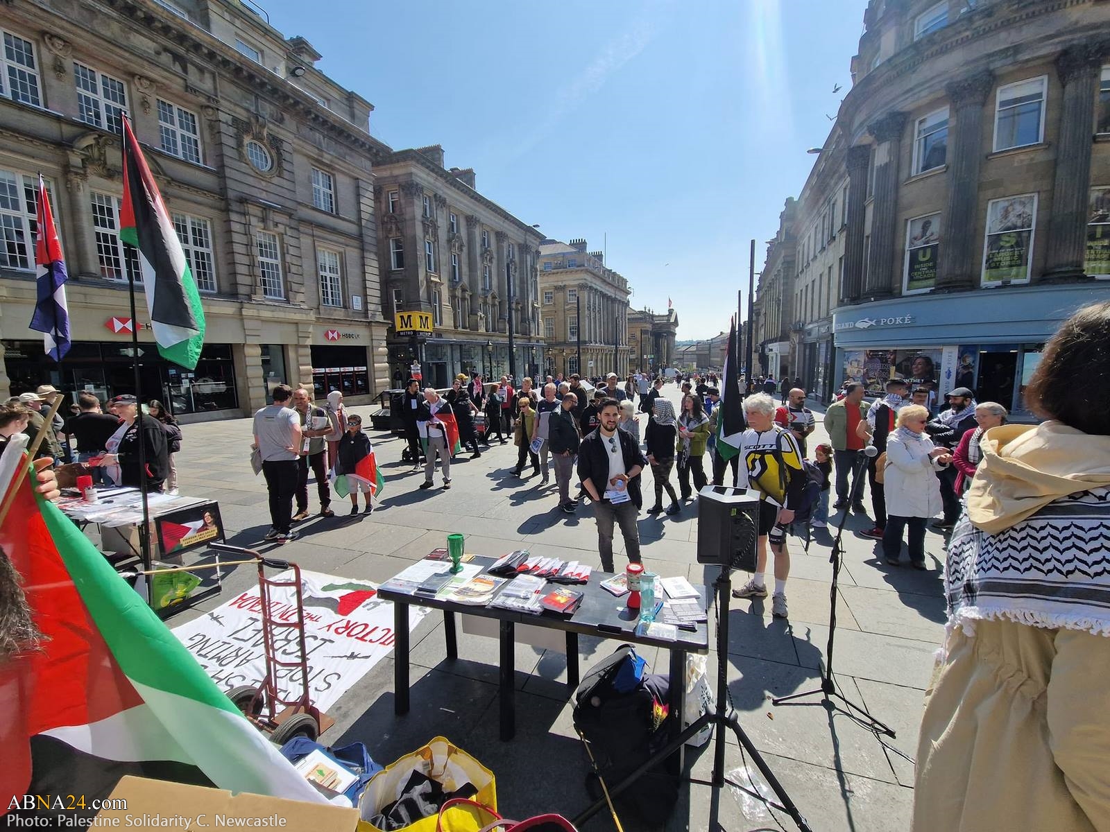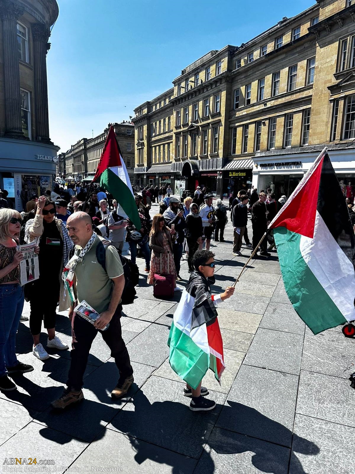 به گزارش خبرگزاری اهل بیت(ع) ـ ابنا ـ حامیان مردم مظلوم فلسطین، به مناسبت هفتاد و پنجمین سالگرد اشغال این کشور که به روز نکبت معروف شده، در نیوکاسل انگلیس تجمع کردند و حملات اخیر ویرانگر رژیم صهیونیستی به غزه را محکوم کردند.