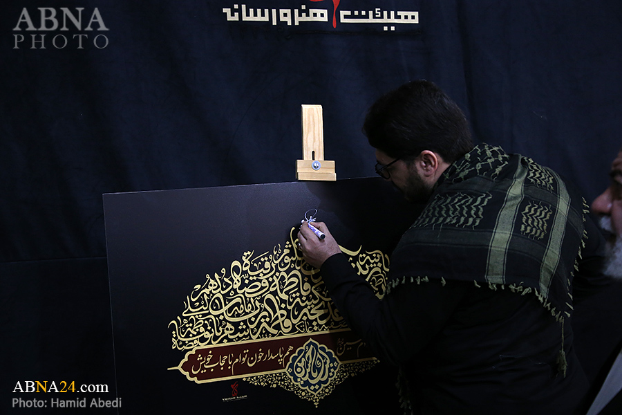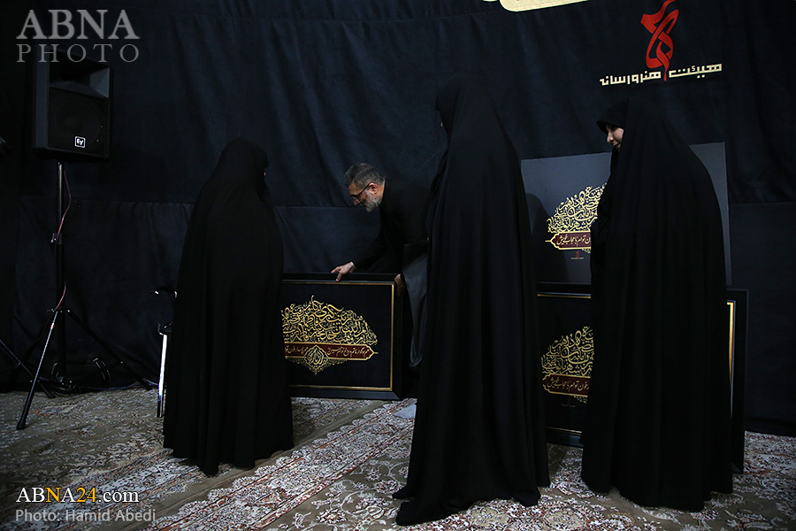 به گزارش خبرگزاری اهل بیت(ع) ـ ابنا ـ آئین رونمایی از کتیبه هیات هنر و رسانه قم شامگاه شنبه با حضور عموزاده مدیرکل فرهنگ و ارشاد اسلامی قم، سردار کبیری‌پور جانشین سپاه امام علی بن ابی طالب (ع) و شماری از مسوولان‌ استانی برگزار شد. در این آئین از کتیبه هیات هنر و رسانه با عنوان«بانوان عاشورایی» اثر مسعود نجابتی از اساتید گرافیک و خوشنویسی استان قم، رونمایی گردید.