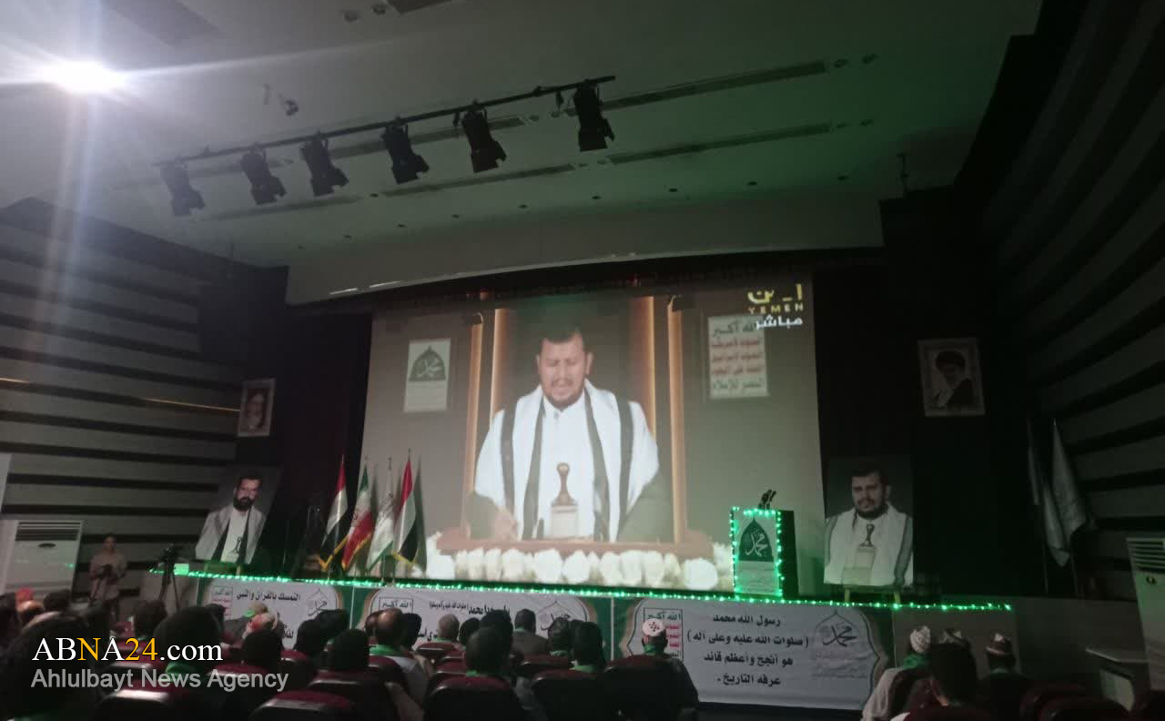 به گزارش خبرگزاری اهلبیت(ع) ـ ابنا ـ در آستانه هفته وحدت و میلاد باسعادت حضرت رسول اکرم(ص) مراسم جشنی با مشارکت دانشجویان و يمنىهاى مقيم ایران در سینما اشراق تهران برگزار شد. در این مراسم که ابراهيم الدیلمی سفير يمن در تهران نيز حضور داشت، سخنرانی سيدعبدالملك بدرالدين الحوثی، رهبر جنبش انصارالله یمن که به مناسبت سالروز ميلاد پيامبر اعظم(ص) در صنعا برگزار میشد، به طور زنده براى حاضران پخش گردید.
