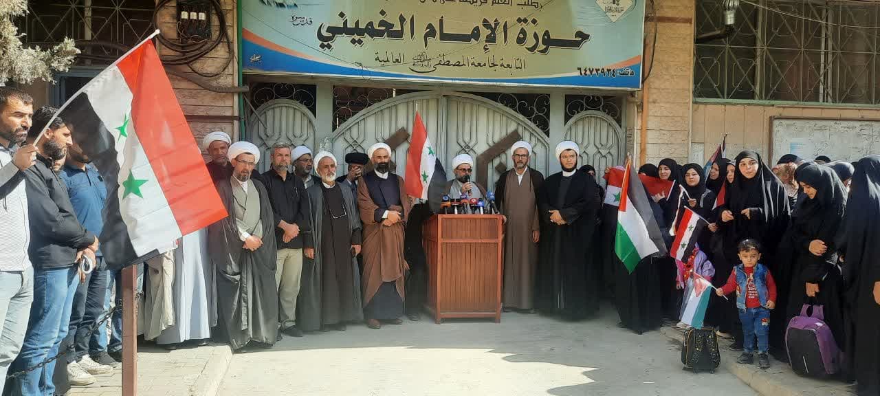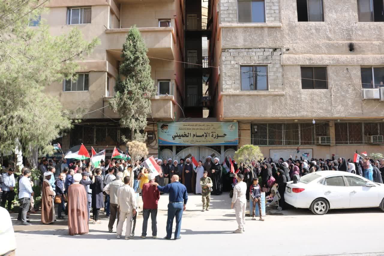 به گزارش خبرگزاری اهل بیتة(ع) ـ ابنا ـ به همت مجمع اهل بیت علیهم السلام و نمایندگی جامعة المصطفى (ص) العالمية در سوریه و با حضور طلاب و اساتید حوزه های علمیه زینبیه تجمع همبستگی در راستای حمایت از مردم مظلوم فلسطین و محکومیت جنایات هولناک رژیم کودک کش صهیونیستی برگزار شد.