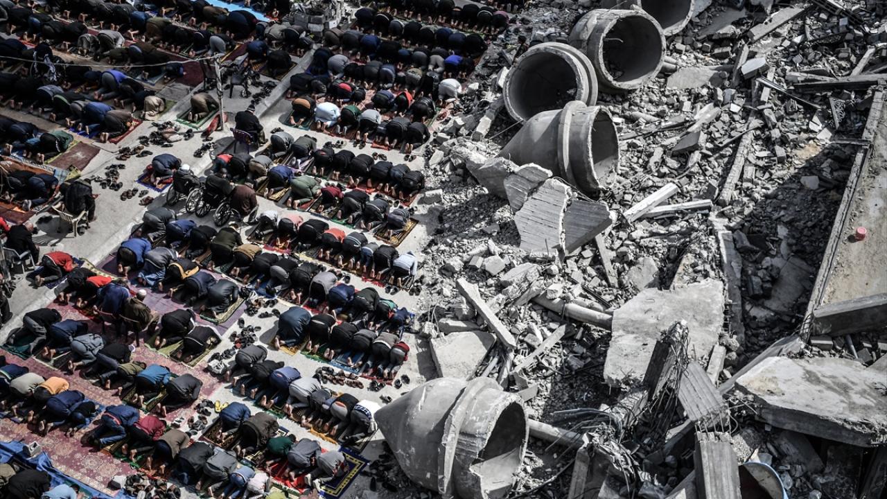 به گزارش خبرگزاری اهل بیت(ع) ـ ابنا ـ مردم مظلوم فلسطین جمعه این هفته نماز جمعه را در ویرانه های مسجد فاروق در شهر رفح اقامه کردند.