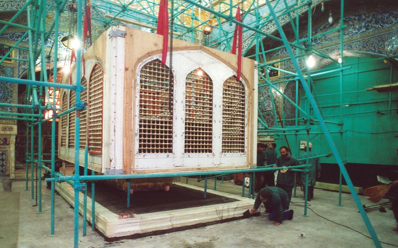 به گزارش خبرگزاری اهل بیت(ع) ـ ابنا ـ ضریح پنجم روضه منوره رضوی معروف به «سیمین و زرین» که توسط استاد فرشچیان طراحی شده بود در اسفند سال ۱۳۷۹ جایگزین ضریح چهارم موسوم به «شیر و شکر» شد.