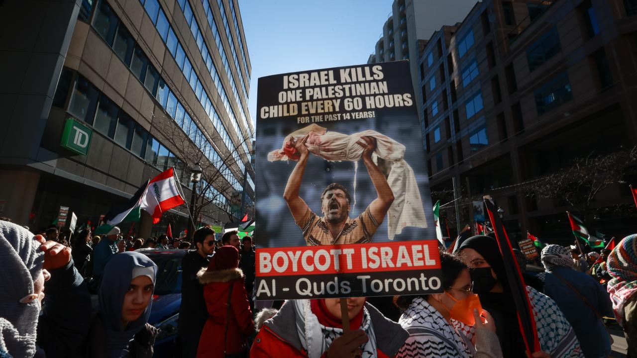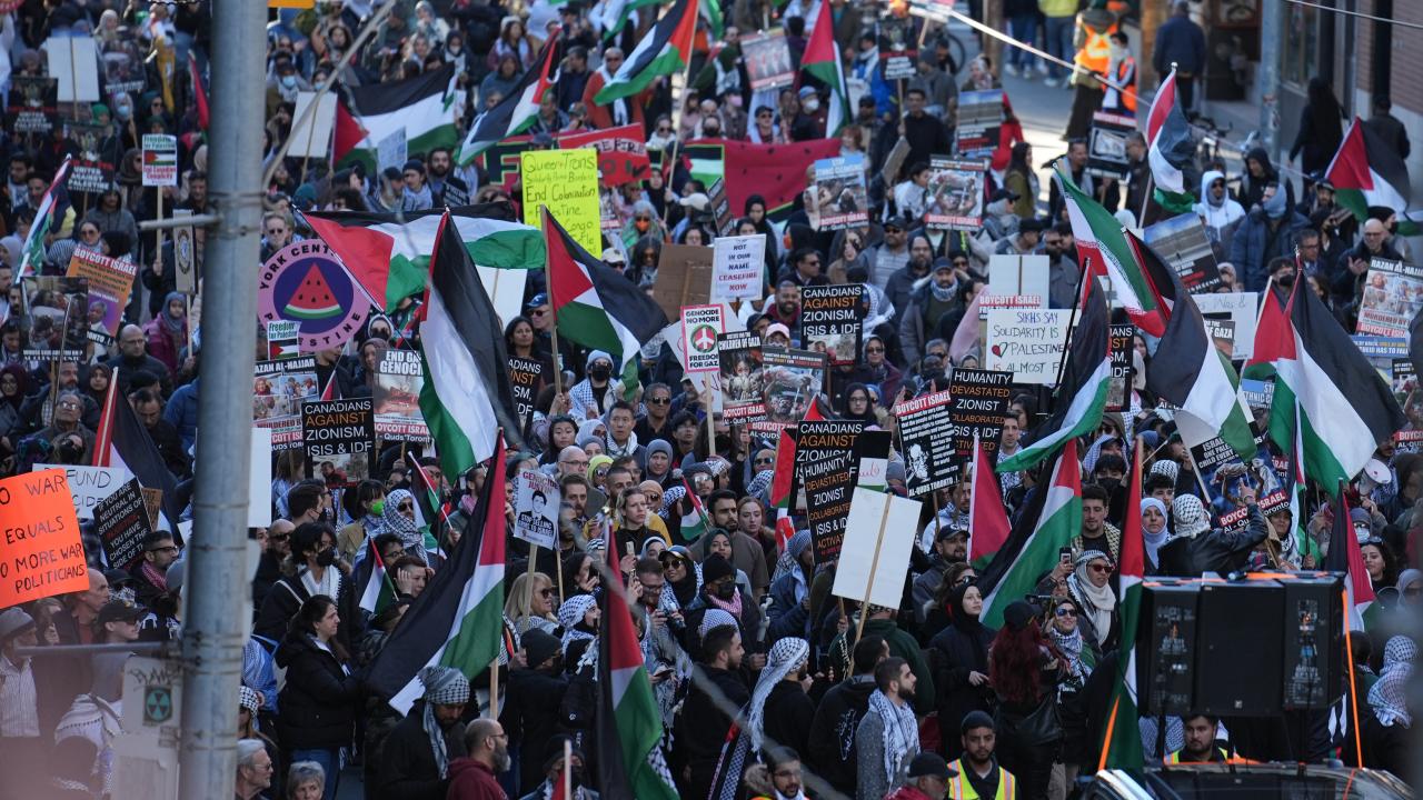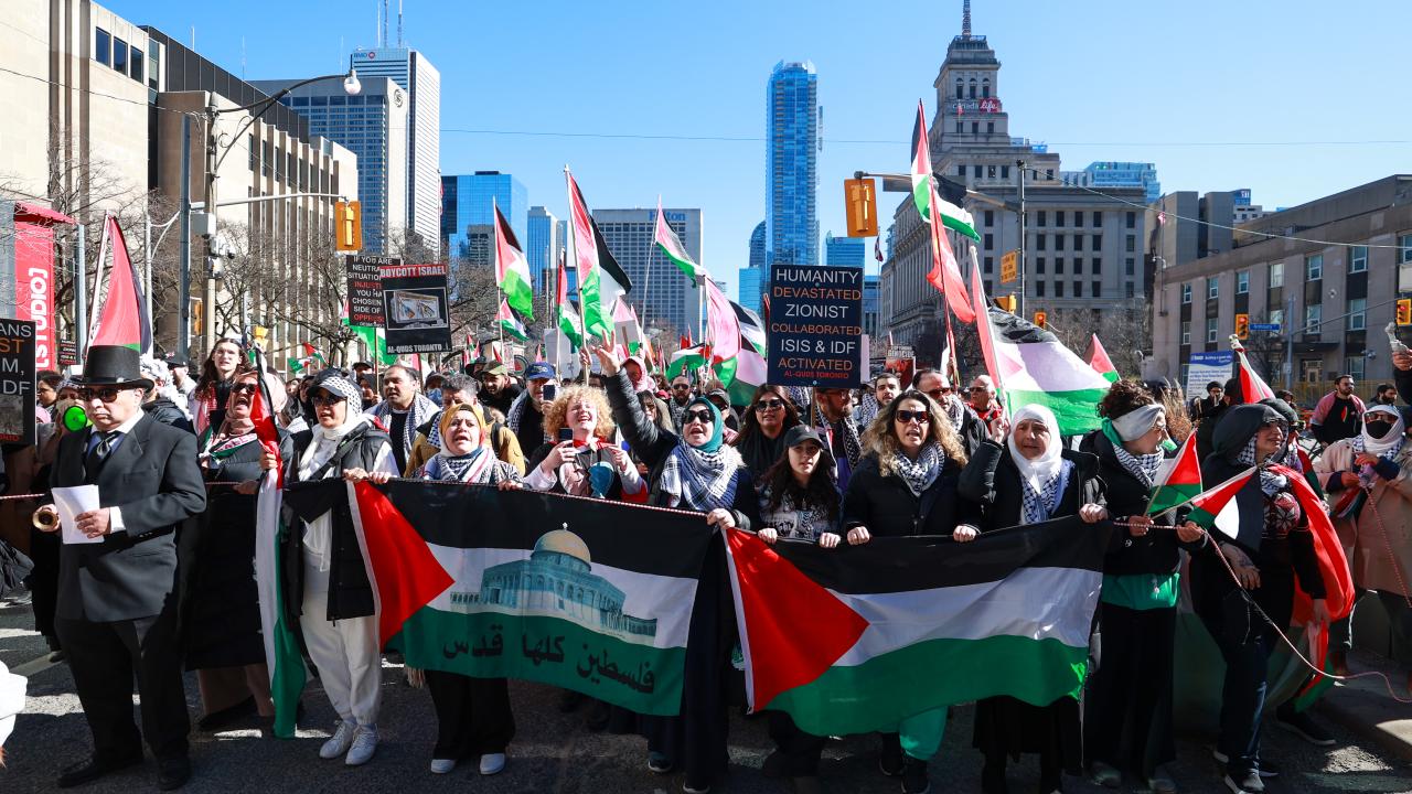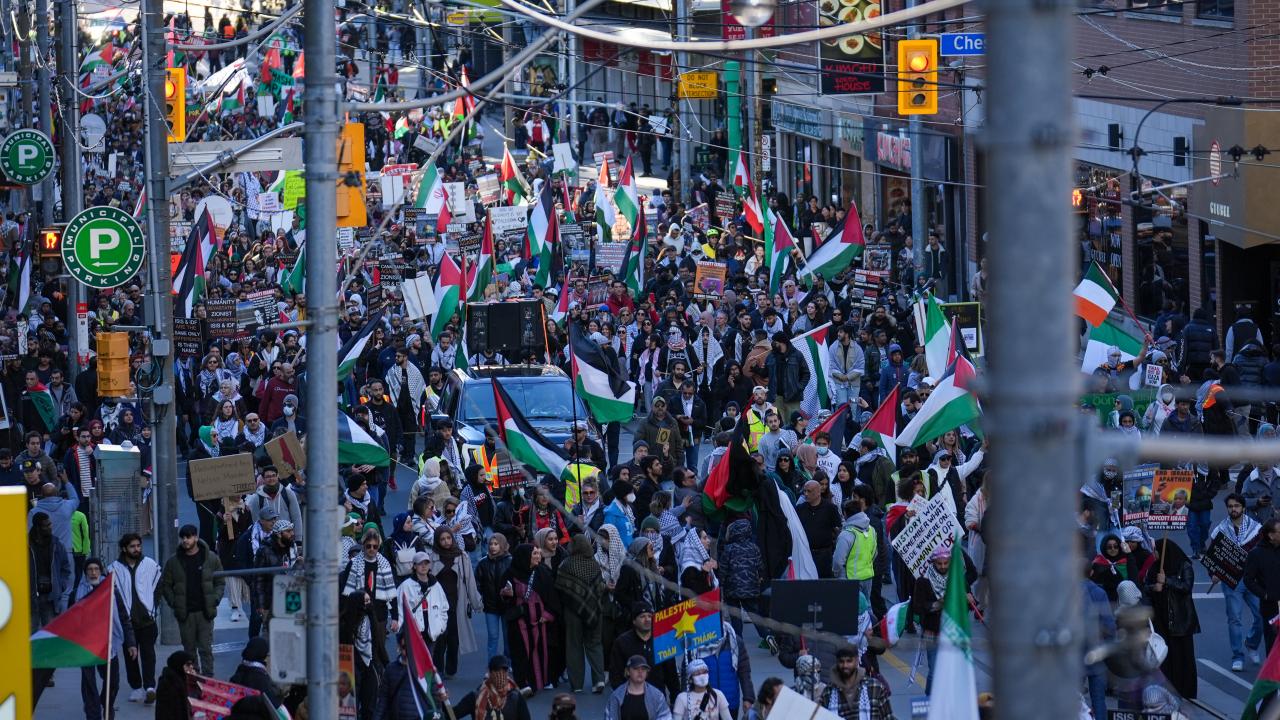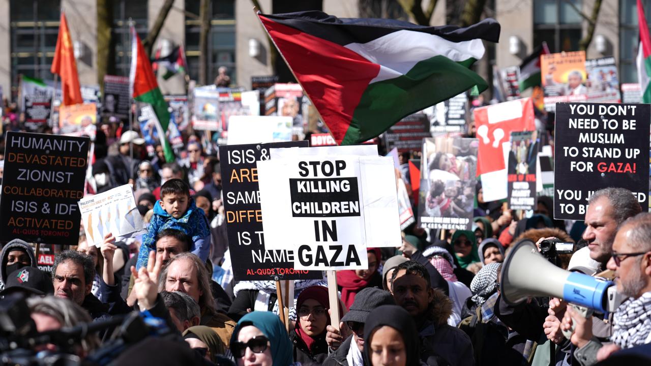 به گزارش خبرگزاری اهل بیت(ع) ـ ابنا ـ تعداد زیادی از حامیان فلسطین در کانادا، با برپایی تجمع و تظاهراتی مقابل کنسولگری آمریکا در تورنتو، جنایات رژیم صهیونیستی علیه مردم غزه را محکوم کردند و خواستار آتش بس فوری شدند.