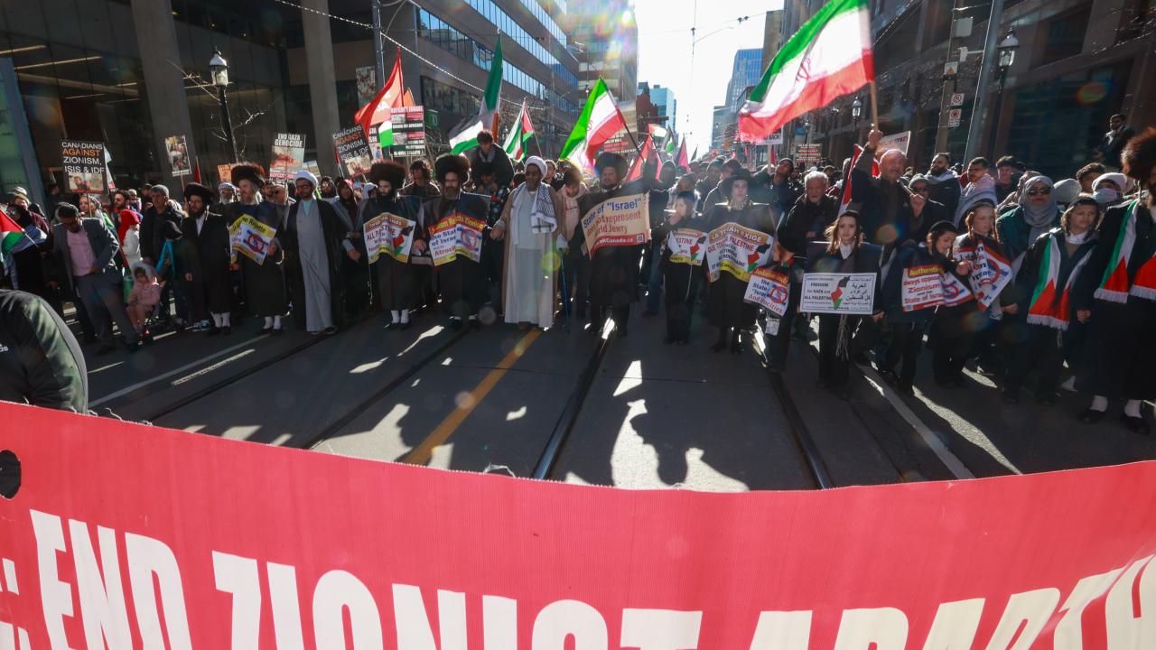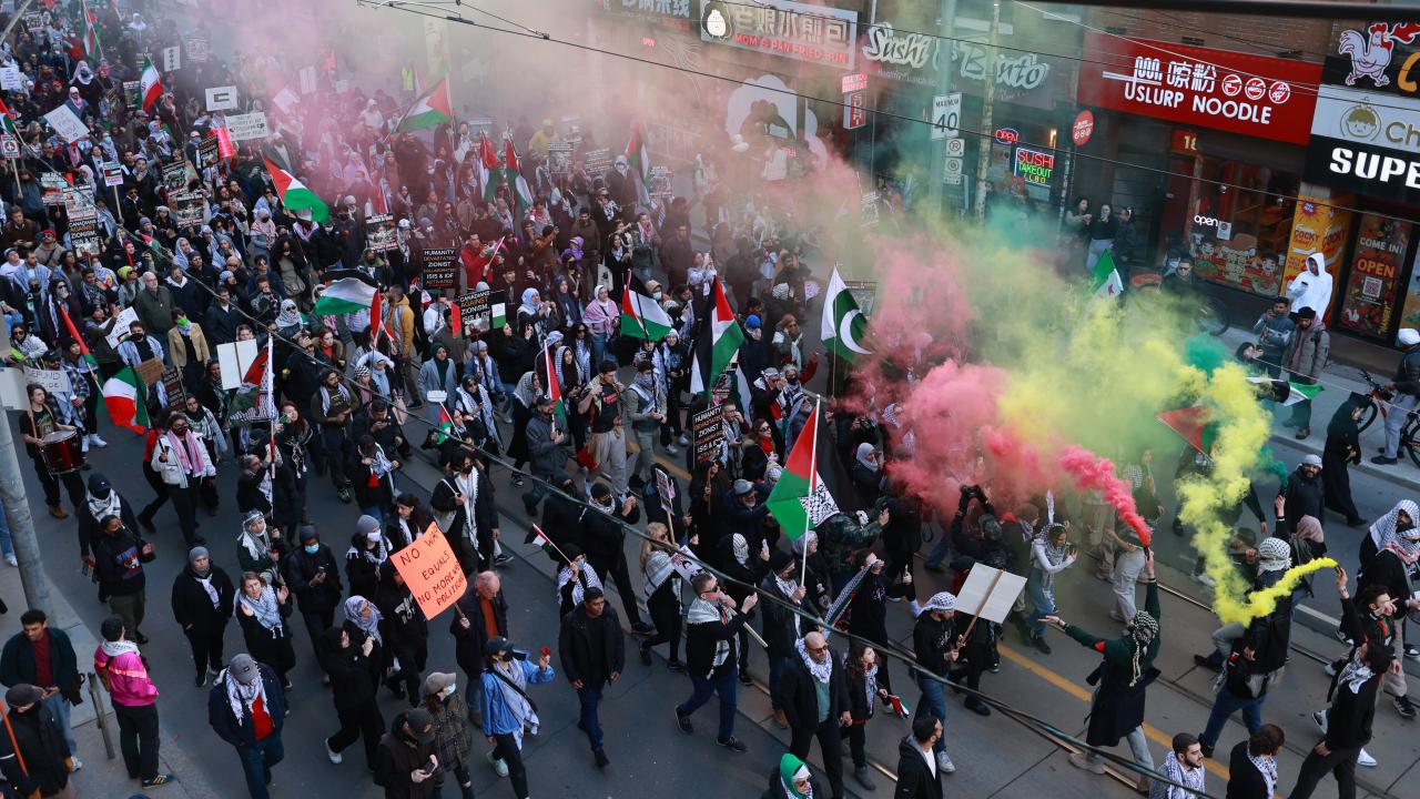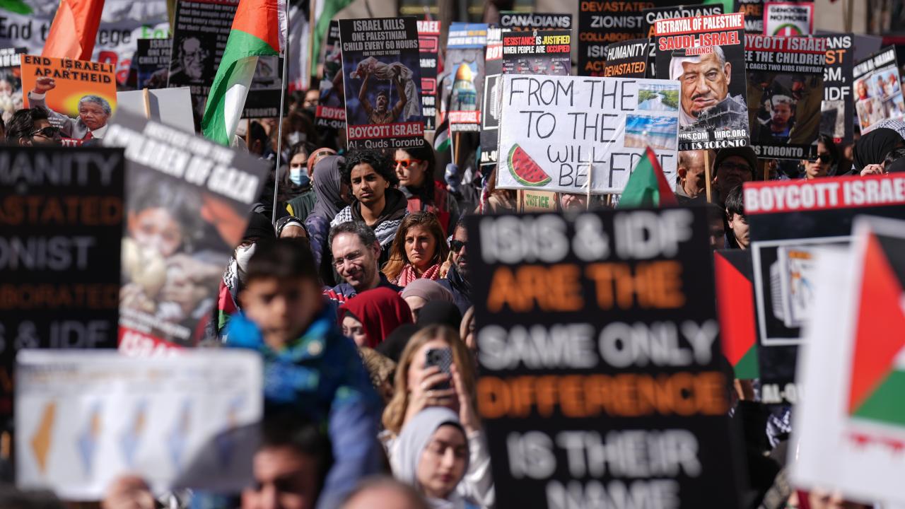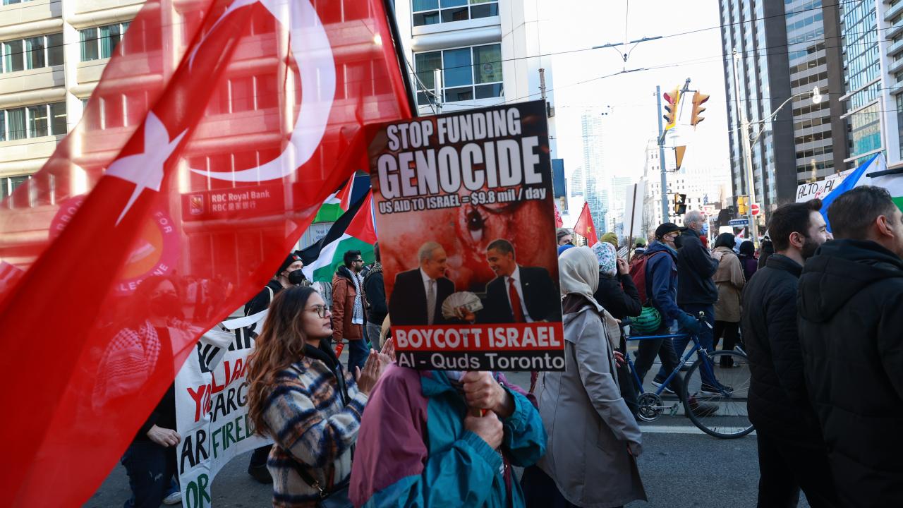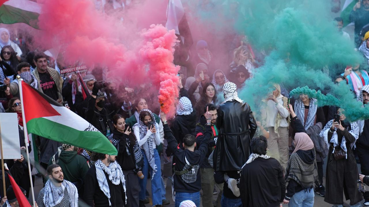 به گزارش خبرگزاری اهل بیت(ع) ـ ابنا ـ تعداد زیادی از حامیان فلسطین در کانادا، با برپایی تجمع و تظاهراتی مقابل کنسولگری آمریکا در تورنتو، جنایات رژیم صهیونیستی علیه مردم غزه را محکوم کردند و خواستار آتش بس فوری شدند.