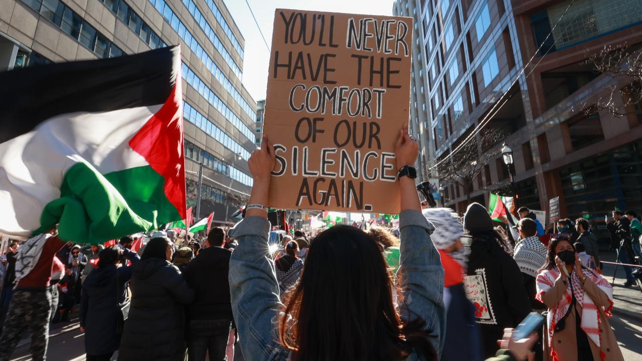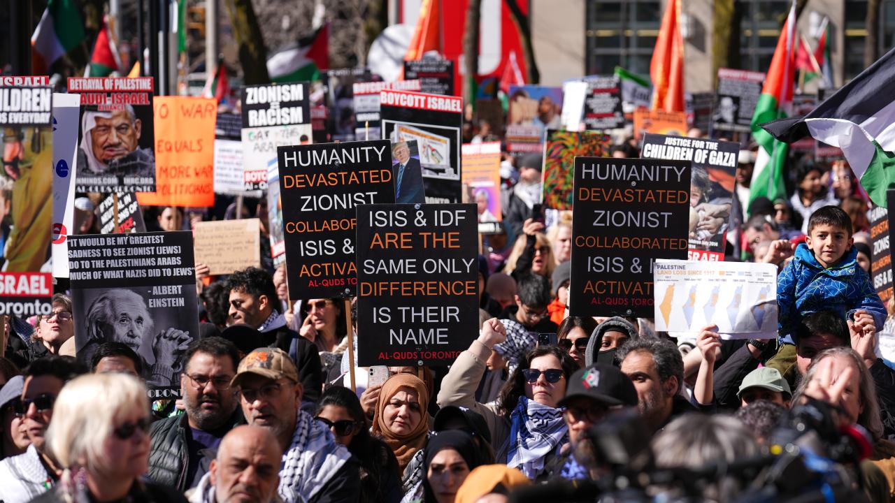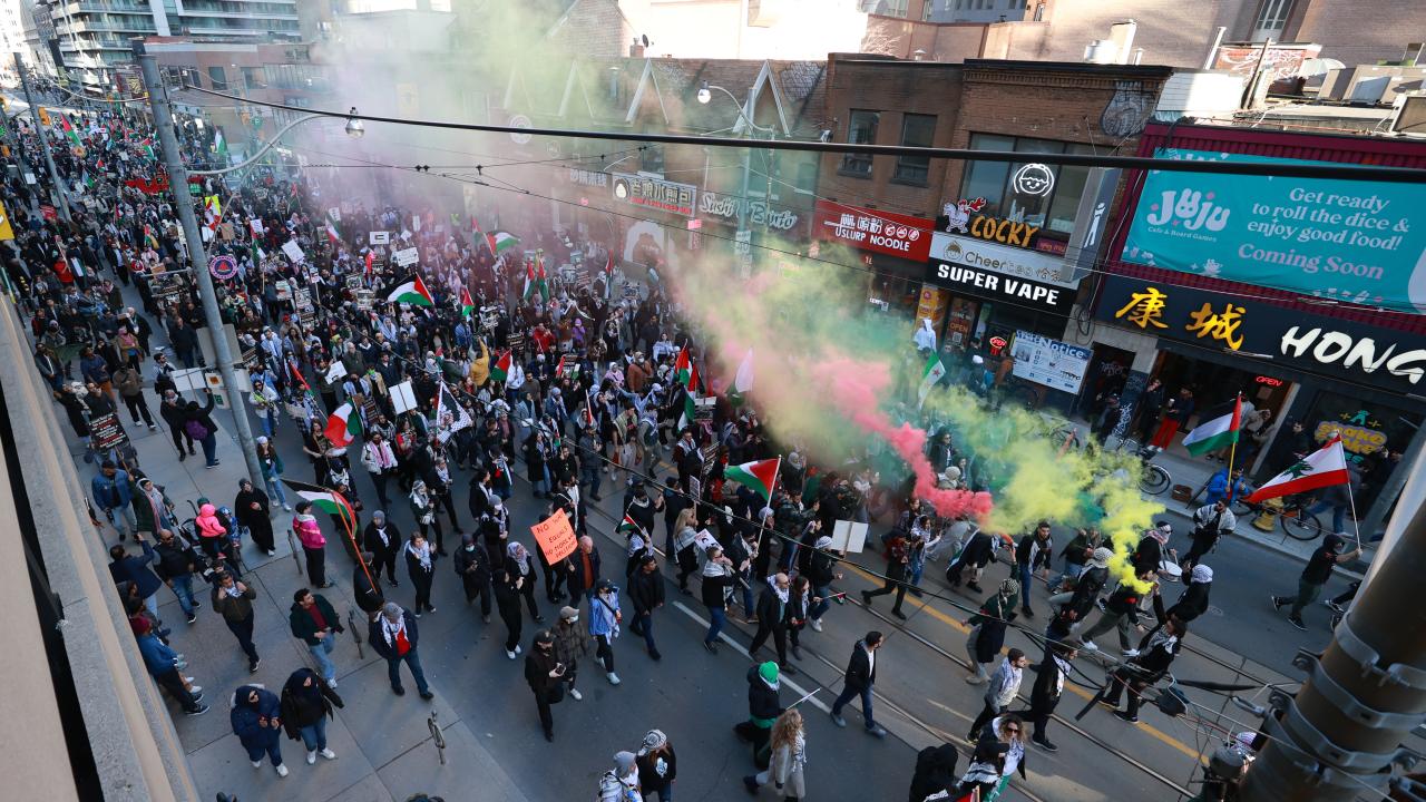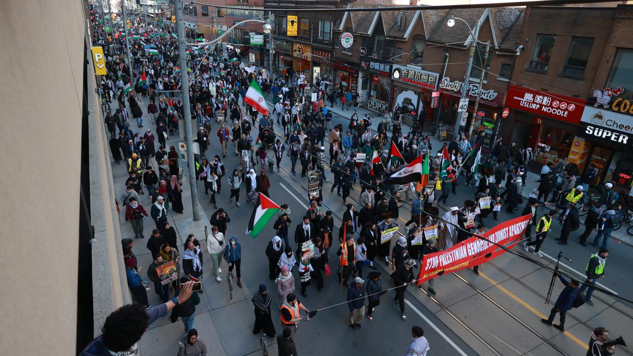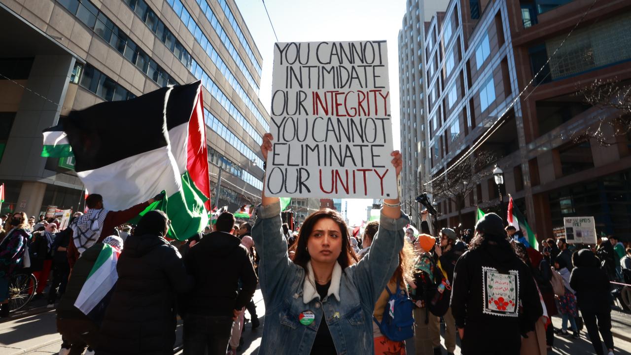 به گزارش خبرگزاری اهل بیت(ع) ـ ابنا ـ تعداد زیادی از حامیان فلسطین در کانادا، با برپایی تجمع و تظاهراتی مقابل کنسولگری آمریکا در تورنتو، جنایات رژیم صهیونیستی علیه مردم غزه را محکوم کردند و خواستار آتش بس فوری شدند.