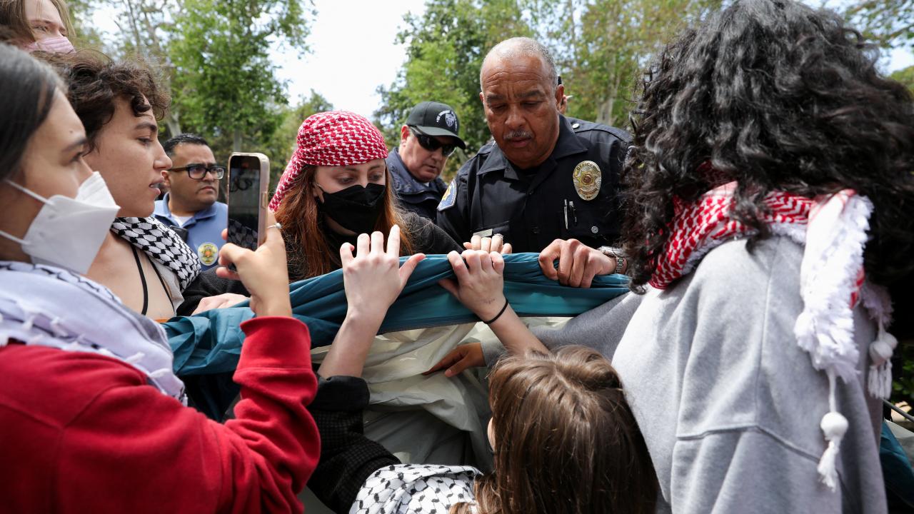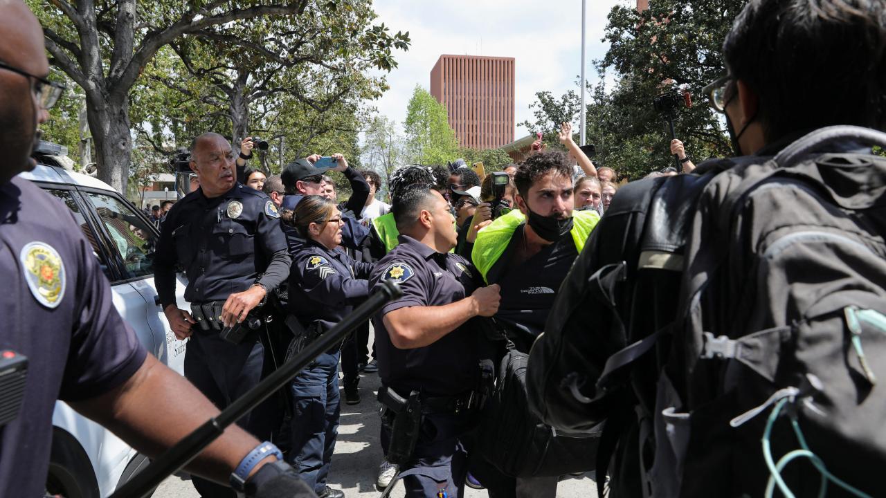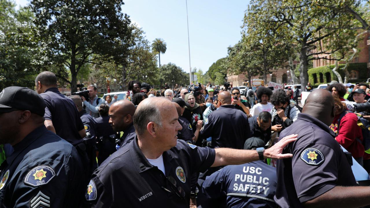 به گزارش خبرگزاری اهل بیت(ع) ـ ابنا ـ جمعی از دانشجویان دانشگاه کالیفرنیای جنوبی با برپایی تجمعی، جنایات رژیم کودککش اسرائیل را محکوم کردند. در این تجمع نیروهای پلیس آمریکا با دانشجویان درگیر شدند و برخی از آنان را دستگیر کردند.