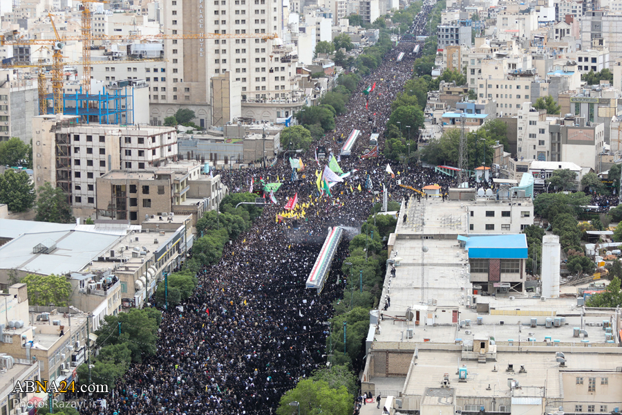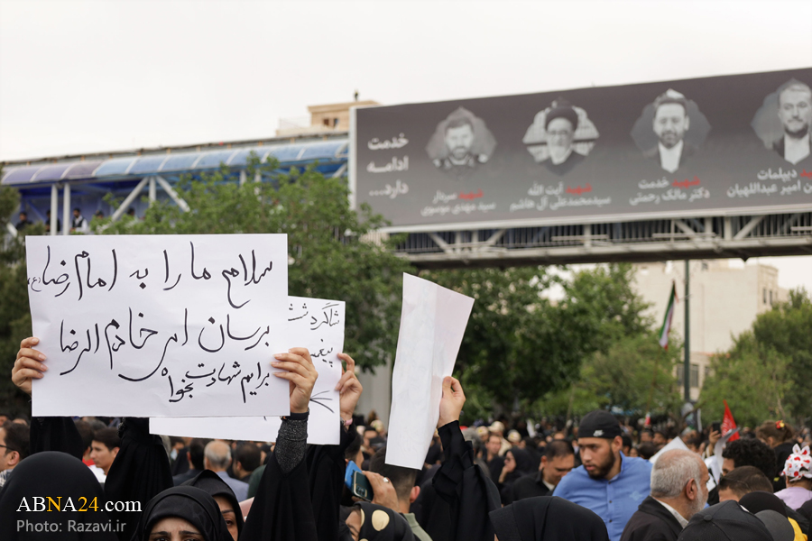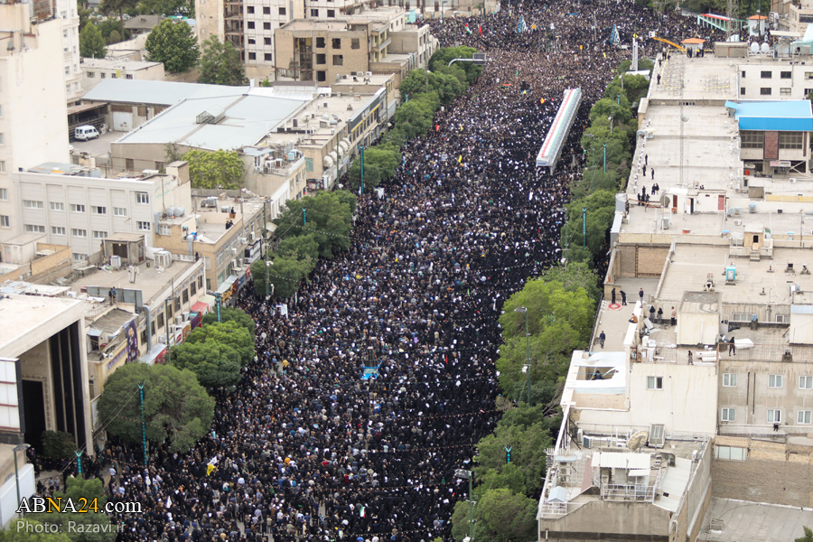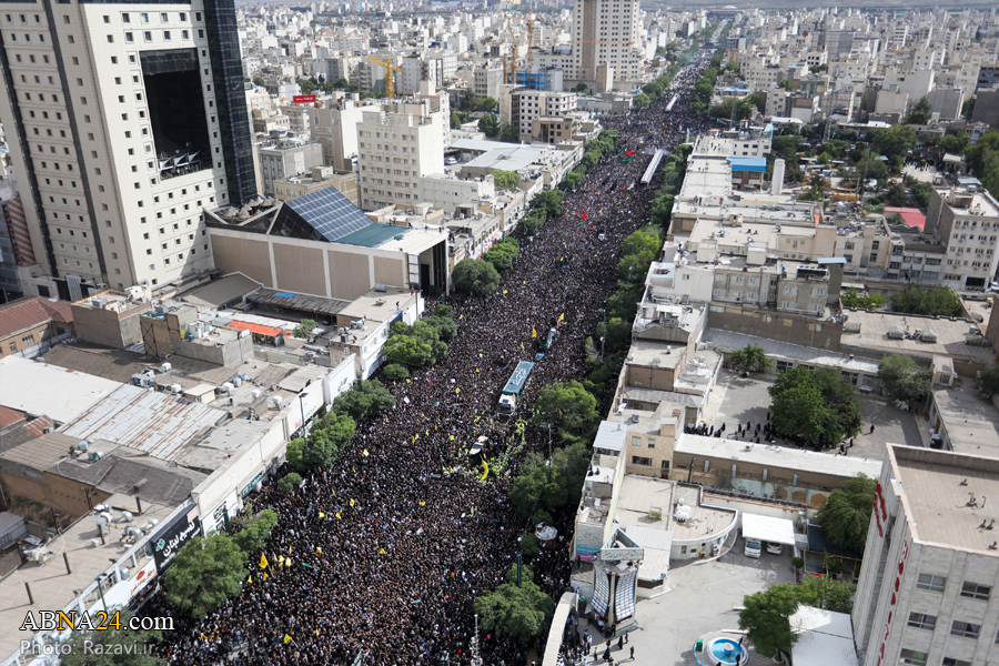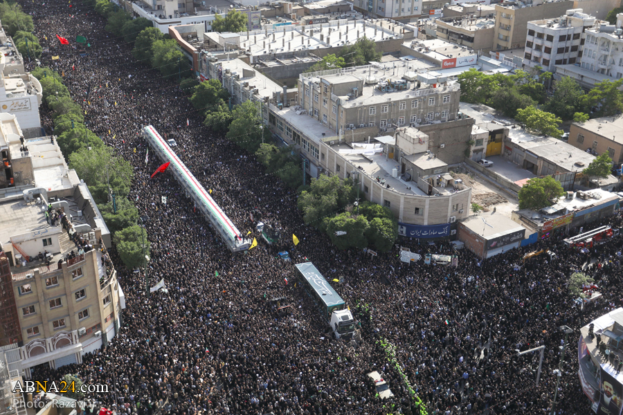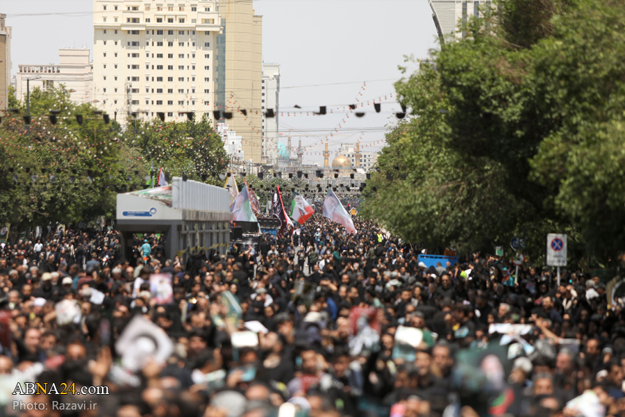 به گزارش خبرگزاری‌ اهل‌بیت(ع) ـ ابنا ـ مراسم تشییع پیکر شهدای خدمت، آیت الله سیّدابراهیم رئیسی؛ رئیس‌جمهور اسلامی ایران، دکتر رحمتی؛ استاندار آذربایجان شرقی، سردار سید مهدی موسوی امروز پنجشنبه ۳ خرداد ۱۴۰۳ در میان خیل عظیم تشییع کنندگان، از میدان ۱۵ خرداد شهر مشهد به سمت حرم مطهر رضوی برگزار شد.