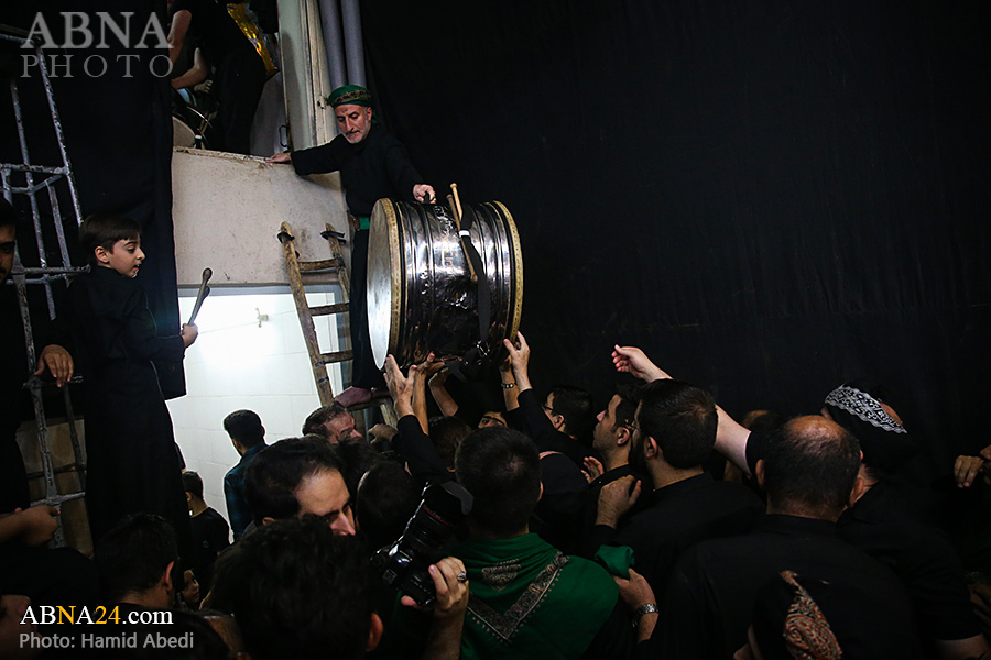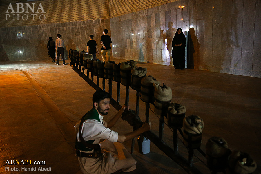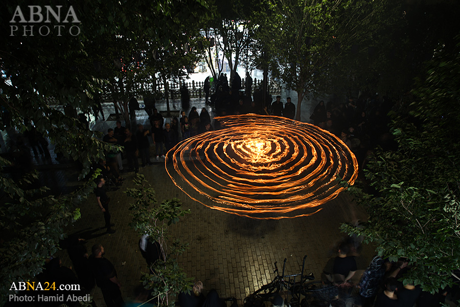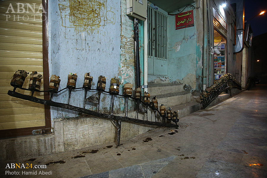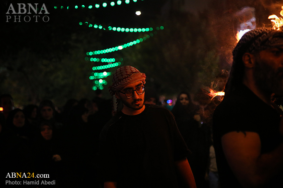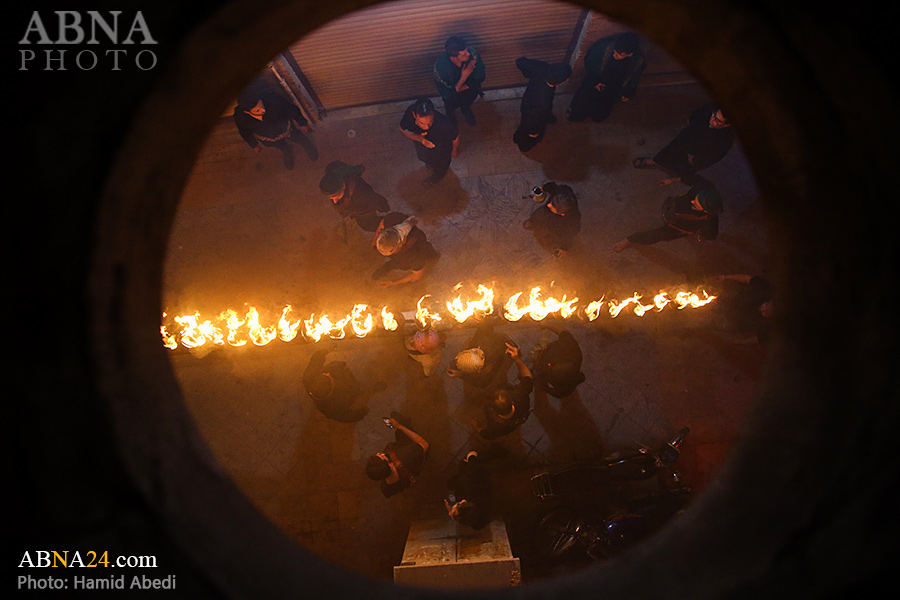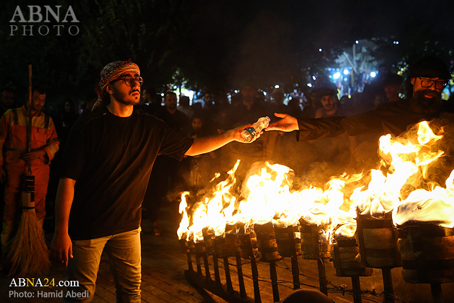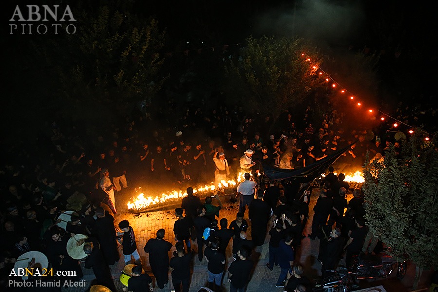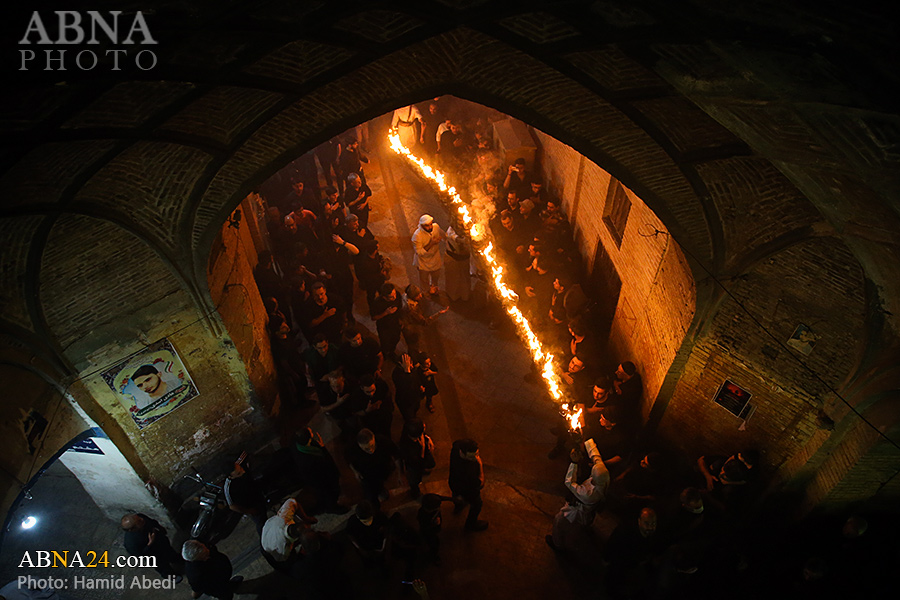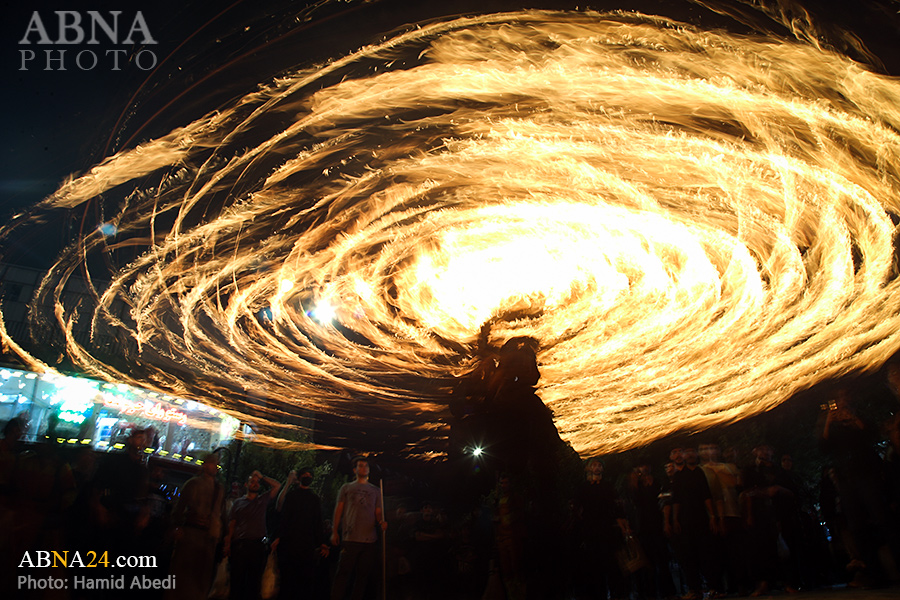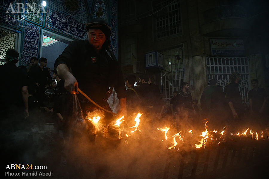 به گزارش خبرگزاری بین‌المللی اهل‌بیت(ع) ـ ابنا ـ آیین سنتی مشعل گردانی نجفی های مقیم قم امشب شنبه ۲۳ تیر ۱۴۰۳ مصادف با شب هشتم محرم الحرام به سمت حرم حضرت فاطمه معصومه (س) برگزار شد. مشعل‌های حمل شده در این مراسم نمادی از مشعل‌هایی هستند که خیمه گاه اباعبدالله الحسین (علیه‌السلام) را به آتش کشیدند و نواختن گسترده طبل‌ها نیز یادآور نواختن طبل در زمان حمله لشگر یزید به خیمه‌گاه و اهل حرم است که با صدای بلند نواختن طبل مانع از شنیده شدن صدای زنان و کودکان شدند.