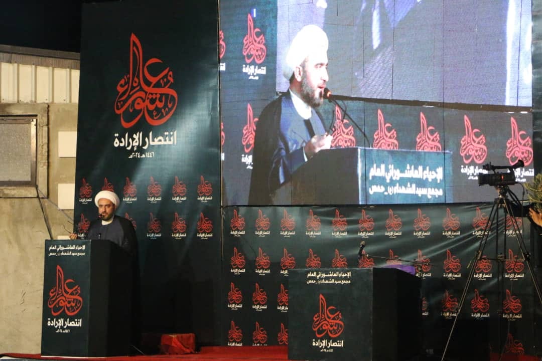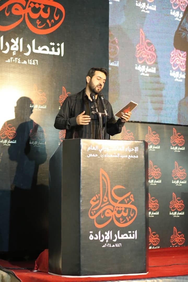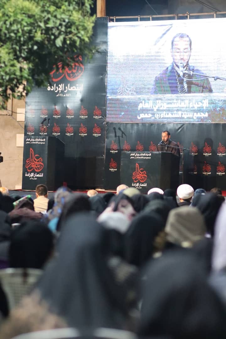 به گزارش خبرگزاری بین‌المللی اهل‌بیت(ع) ـ ابنا ـ مراسم عزاداری شهادت امام حسین(ع) در دهه اول ماه محرم با حضور گسترده پیروان مکتب اهل بیت(ع) در مجتمع حضرت سیدالشهداء(ع) در شهر حمص در کشور سوریه، برگزار شد.
