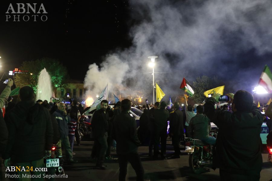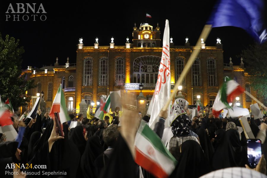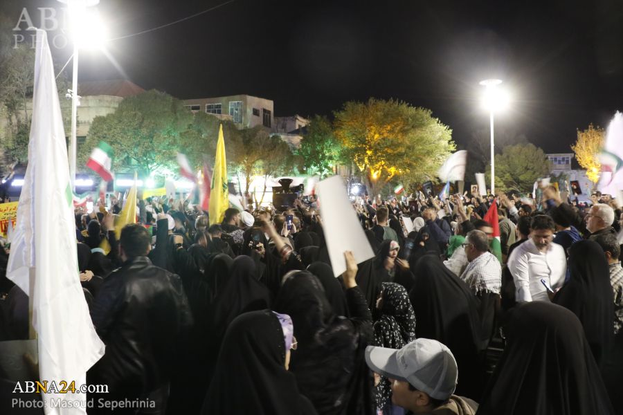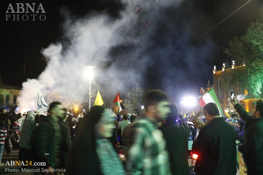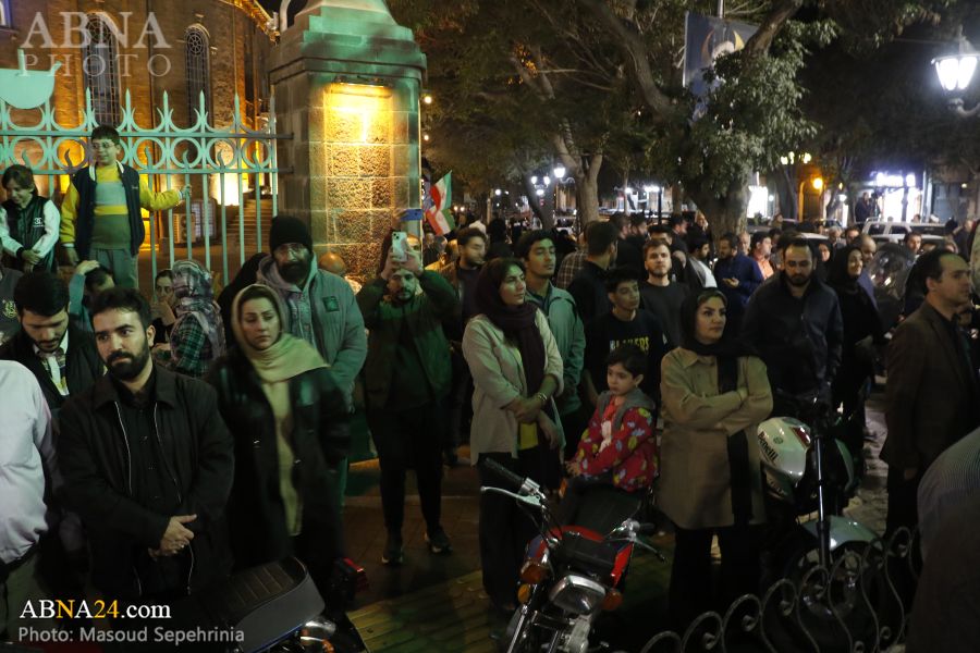 به گزارش خبرگزاری بینالمللی اهلبیت(ع) ـ ابنا ـ مردم شهر تبریز پس از عملیات موشکی سپاه پاسداران انقلاب اسلامی به رژیم صهیونیستی با ابراز خوشحالی به خیابانهای این شهر، آمدند و شعار مرگ بر اسرائیل و آمریکا سر دادند. همچنین، مردم شهر تبریز شبانه در میدان ساعت این شهر، جمع شدند و شعارهایی همچون سپاهی تشکر، ارتشی تشکر، بیز اولماخا حاضروخ خامنهای سربازیوخ و مرگ اسرائیل سر دادند.