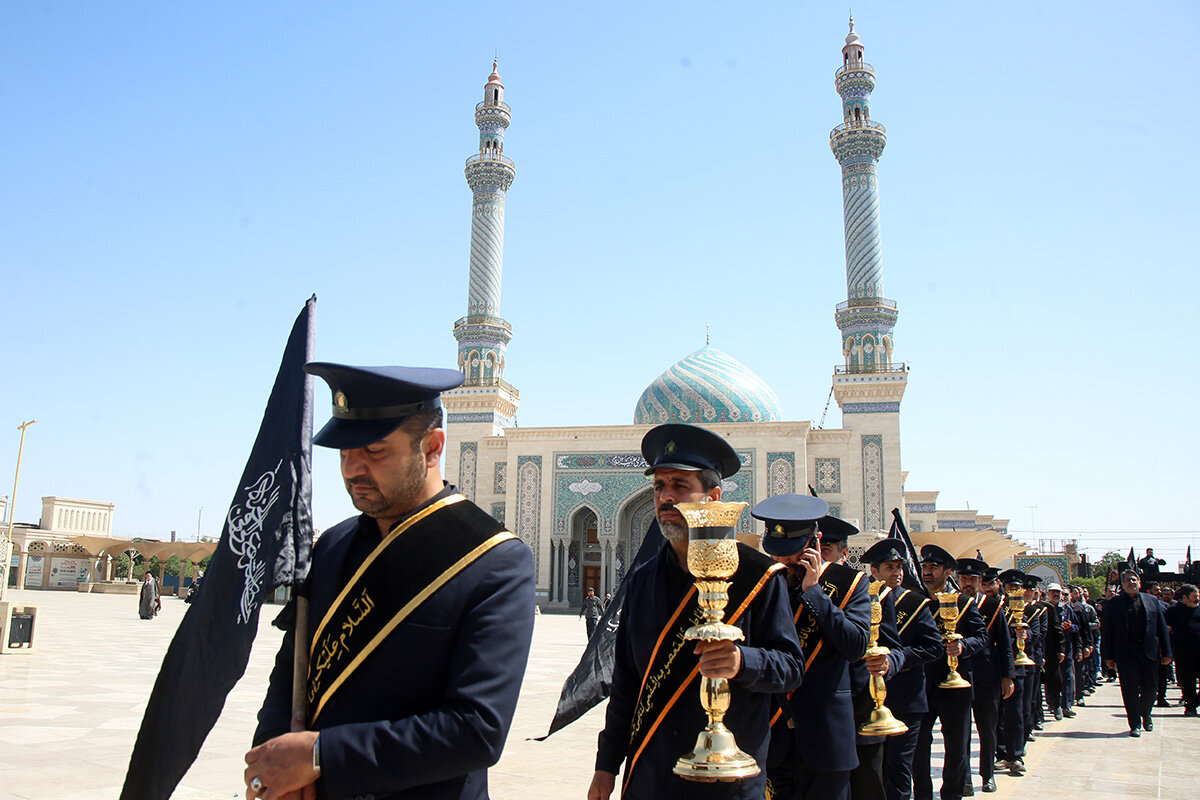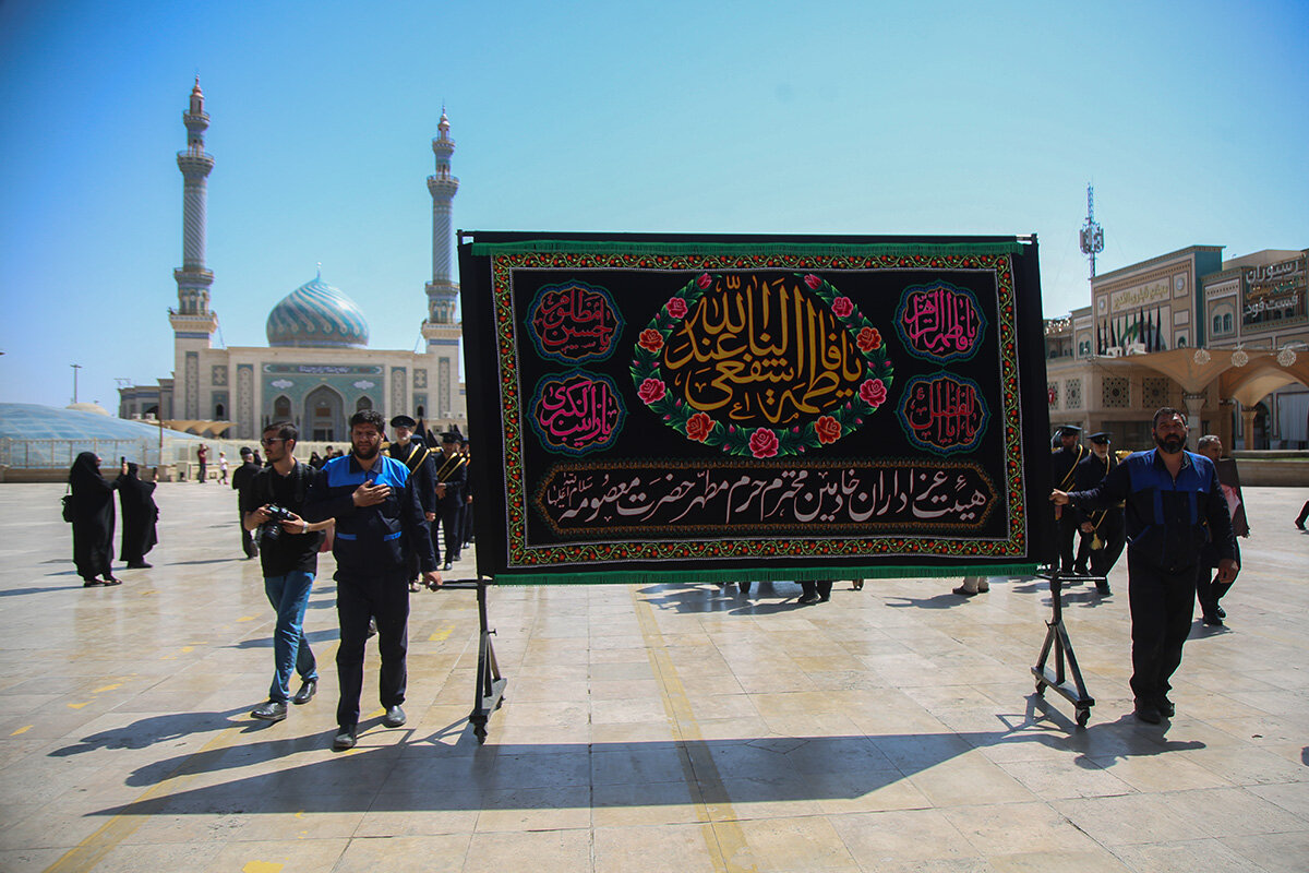 به گزارش خبرگزاری بینالمللی اهلبیت(ع) ـ ابنا ـ دسته عزای خادمان و زائران حرم مطهر بانوی کرامت صبح امروز از مسجد امام حسن عسکری علیهالسلام به سمت حرم مطهر بانوی کرامت به راه افتاد.