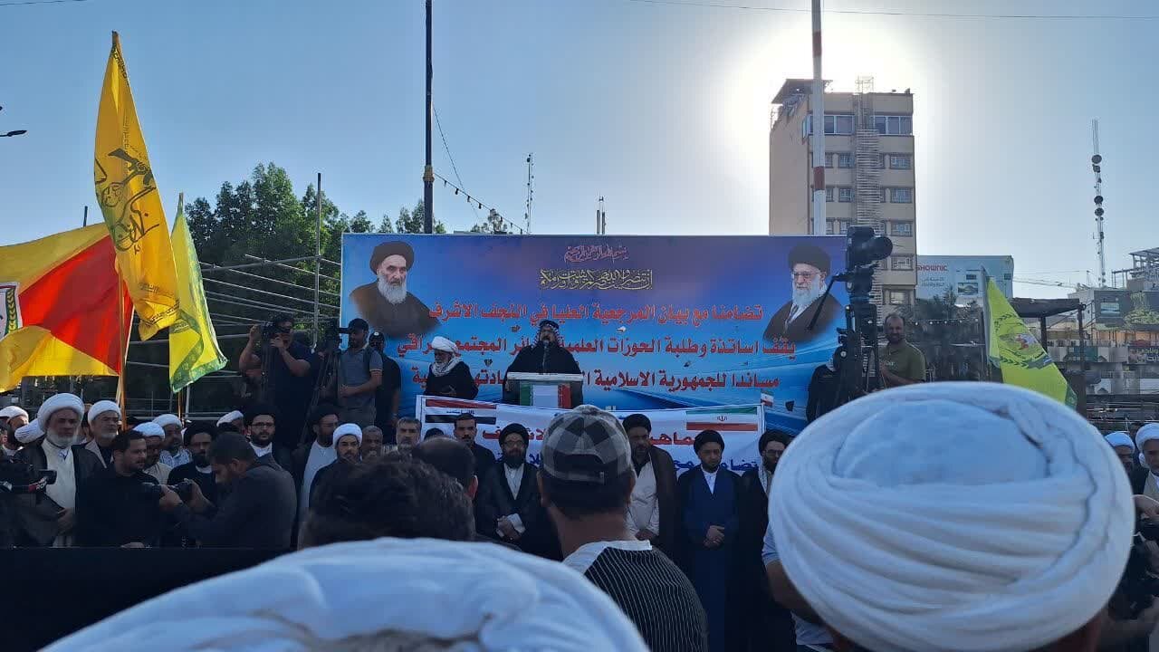 به گزارش خبرگزاری بین‌المللی اهل‌بیت(ع) ـ ابنا ـ اقشار مختلف مردم شهر نجف اشرف عراق از جمله طلاب و اساتید حوزه علمیه این شهر و نیز شیوخ عشایر با برگزاری تجمعی در شهر نجف اشرف با مردم ایران و نظام جمهوری اسلامی ایران در برابر تجاوز رژیم صهیونیستی، اعلام همبستگی کردند.