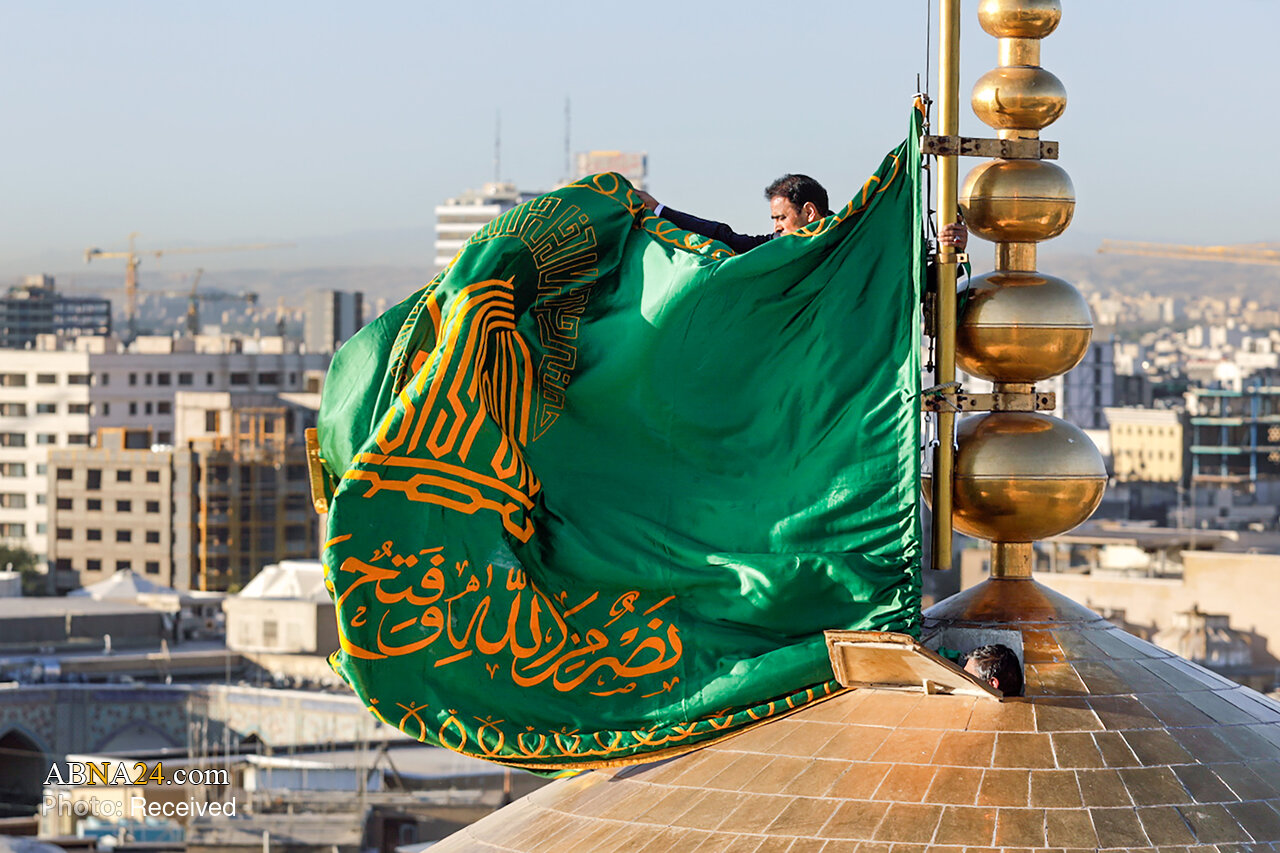 به گزارش خبرگزاری بین‌المللی اهل‌بیت(ع) ـ ابنا ـ در آستانه ماه ربیع‌الاول و پایان دو ماه عزاداری محرم و صفر، پرچم گنبد منور و پوش ضریح مطهر امام رضا علیه‌السلام صبح چهارشنبه ۵ شهریور ۱۴۰۴ با حضور خدام حرم مطهر رضوی تعویض شد.