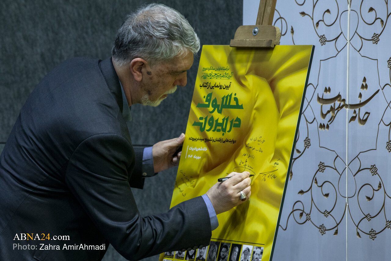 به گزارش خبرگزاری بینالمللی اهلبیت(ع) ـ ابنا ـ آئین رونمایی از کتاب «خسوف در بیروت» با حضور سید عباس صالحی، وزیر فرهنگ و ارشاد اسلامی، حجتالاسلام محمد قمی رئیس سازمان تبلیغات اسلامی و جمعی از نویسندگان کتاب، بعدازظهر امروز چهارشنبه ۲ مهر ماه ۱۴۰۴ در خانه شعر و ادبیات در شهر تهران، برگزار شد. کتاب خسوف در بیروت به کوشش مهدی قزلی و به قلم جمعی از نویسندگان روایتهایی از فقدان و تشییع سید حسن نصرالله را بازگو میکند.