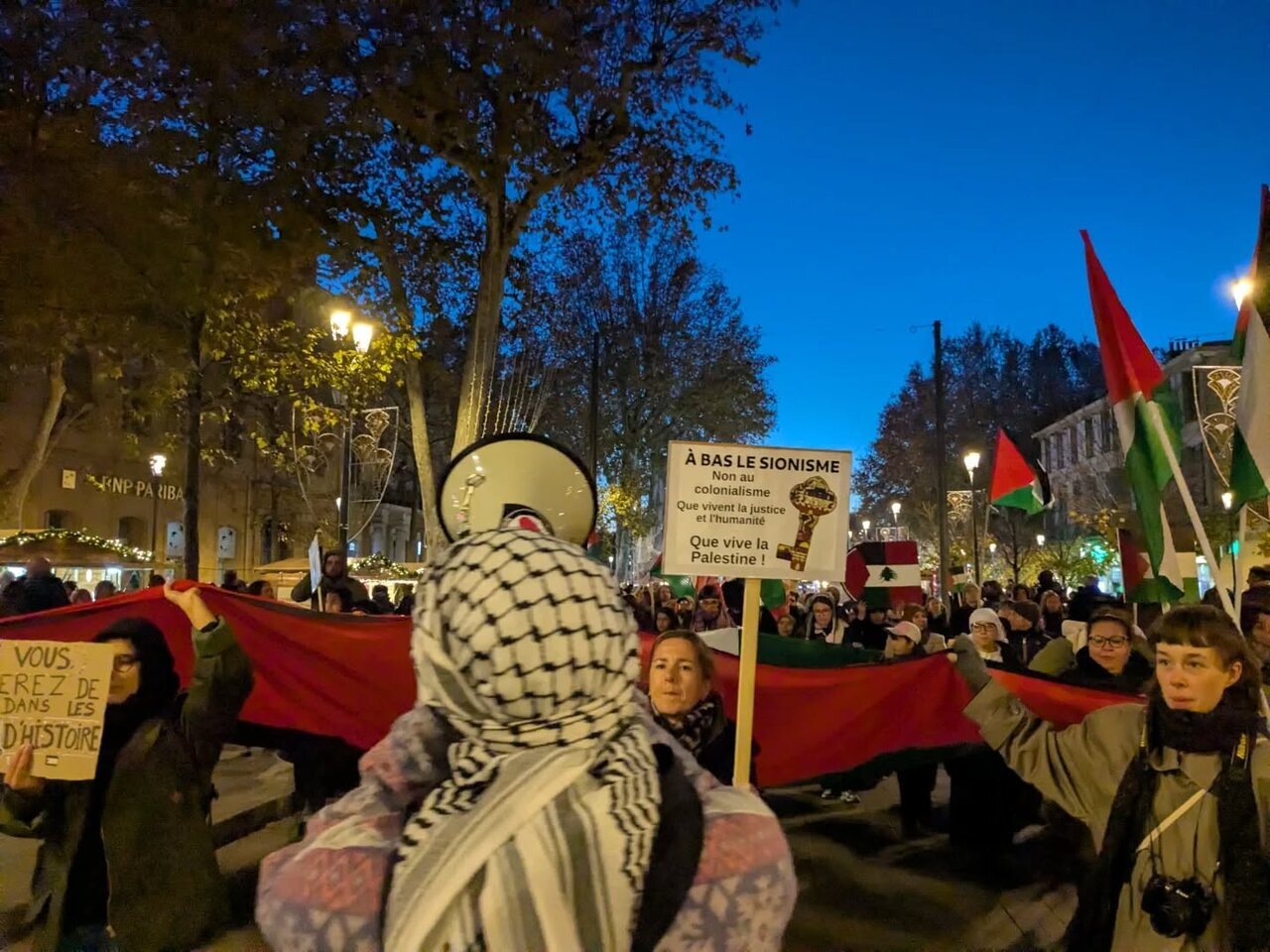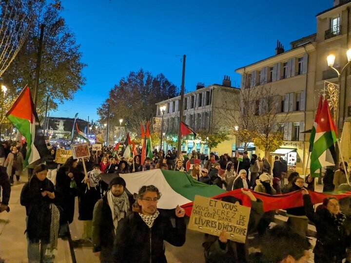 به گزارش خبرگزاری بینالمللی اهلبیت(ع) ـ ابنا ـ صدهانفر امروز شنبه در شهر اکس-ان-پرووانس فرانسه گرد هم آمدند تا با اعلام همبستگی با مردم فلسطین، خواستار پایان جنایات صهیونیستها و اقدام قاطعتر جامعه جهانی شوند.
