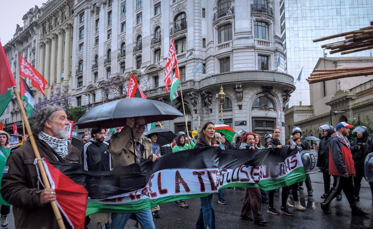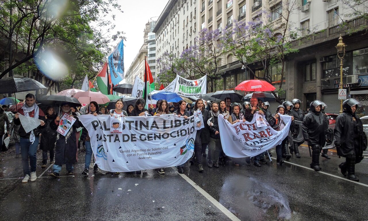 به گزارش خبرگزاری بین‌المللی اهل‌بیت(ع) ـ ابنا ـ هم‌زمان با روز جهانی همبستگی با ملت فلسطین، معترضان در بوینس‌آیرس، آرژانتین، نسل‌کشی در غزه، طرح‌های استعماری ترامپ و انتقال سفارت به قدس اشغالی را محکوم کردند.
