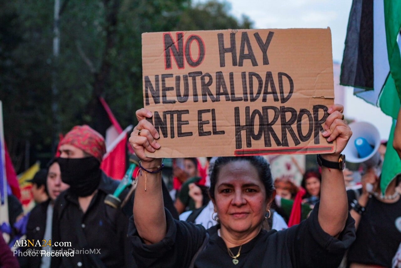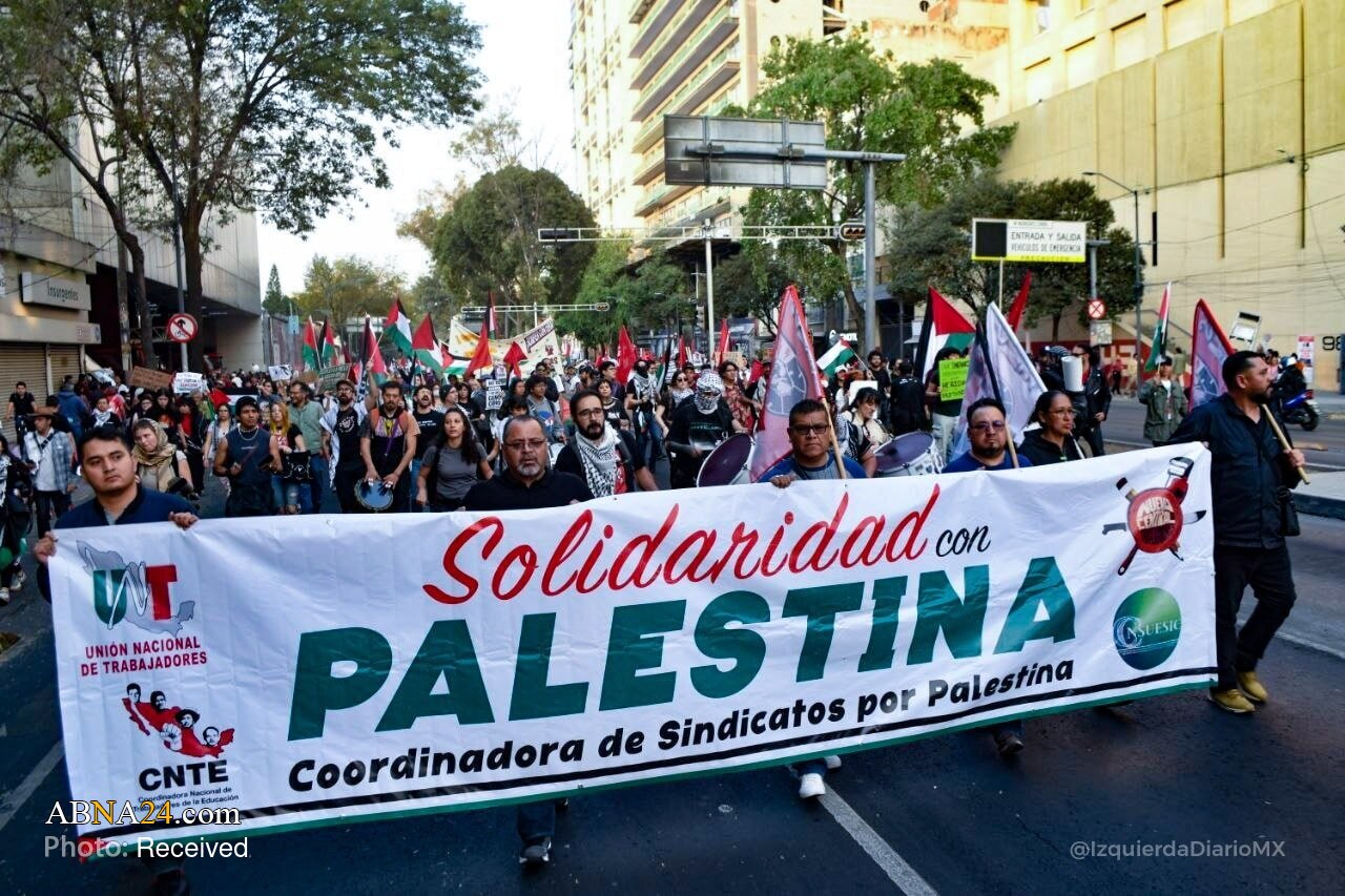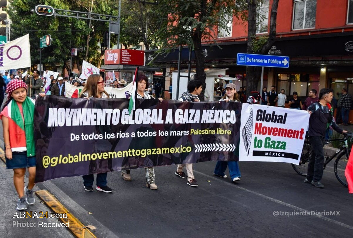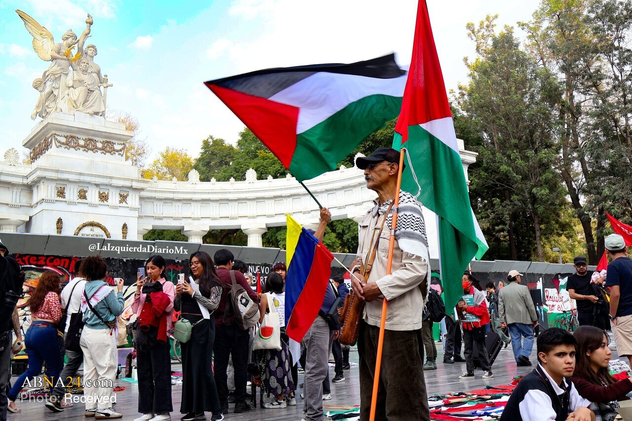 به گزارش خبرگزاری بین‌المللی اهل‌بیت(ع) ـ ابنا ـ در روز جهانی همبستگی با فلسطین، هزاران معترض در مکزیکوسیتی علیه «طرح صلح» ترامپ و نتانیاهو به خیابان‌ها آمدند و آن را پوششی برای ادامه نسل‌کشی، پاک‌سازی قومی و مصادره اراضی در فلسطین اشغالی دانستند.