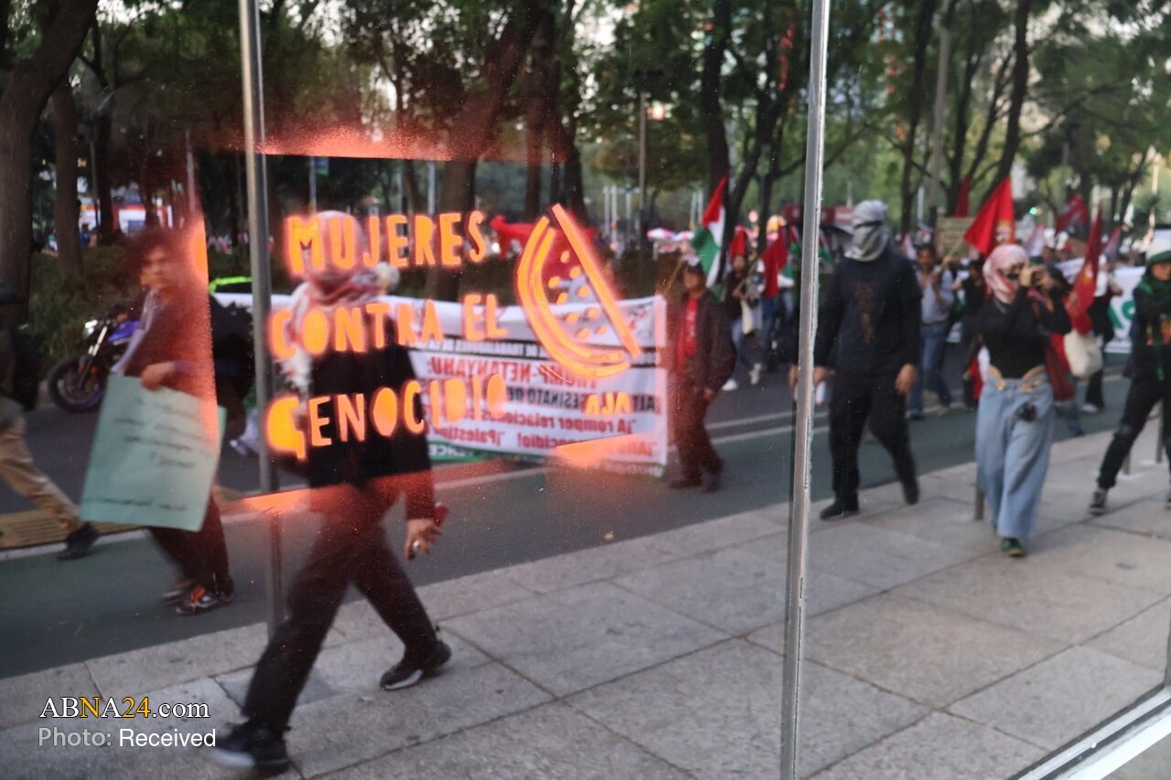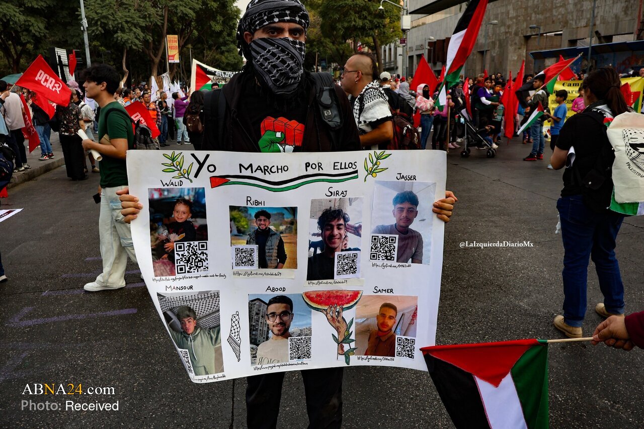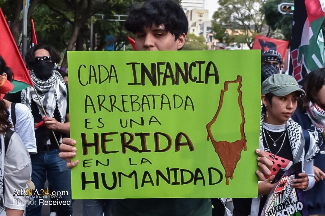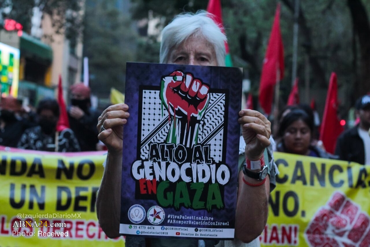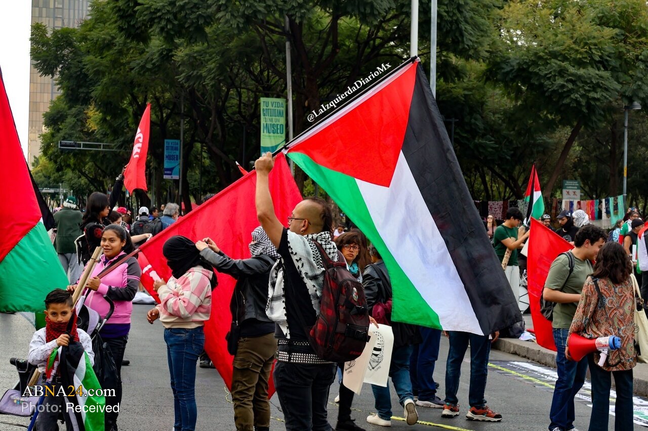 به گزارش خبرگزاری بین‌المللی اهل‌بیت(ع) ـ ابنا ـ در روز جهانی همبستگی با فلسطین، هزاران معترض در مکزیکوسیتی علیه «طرح صلح» ترامپ و نتانیاهو به خیابان‌ها آمدند و آن را پوششی برای ادامه نسل‌کشی، پاک‌سازی قومی و مصادره اراضی در فلسطین اشغالی دانستند.