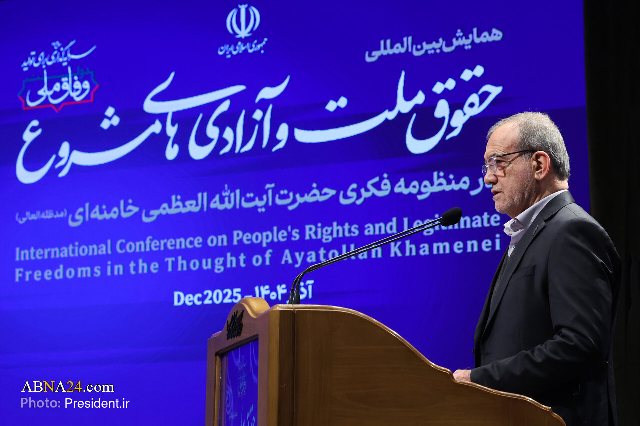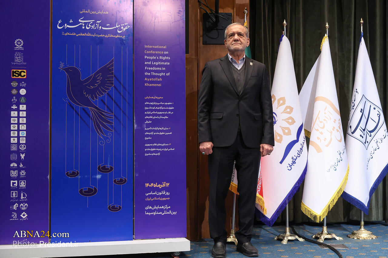 همایش بینالمللی حقوق ملّت و آزادیهای مشروع در منظومه فکری حضرت آیتالله العظمی خامنهای صبح امروز چهارشنبه (۱۲ آذر ۱۴۰۴) با حضور «مسعود پزشکیان» رییس جمهور در مرکز همایشهای بینالمللی صداوسیما برگزار شد.