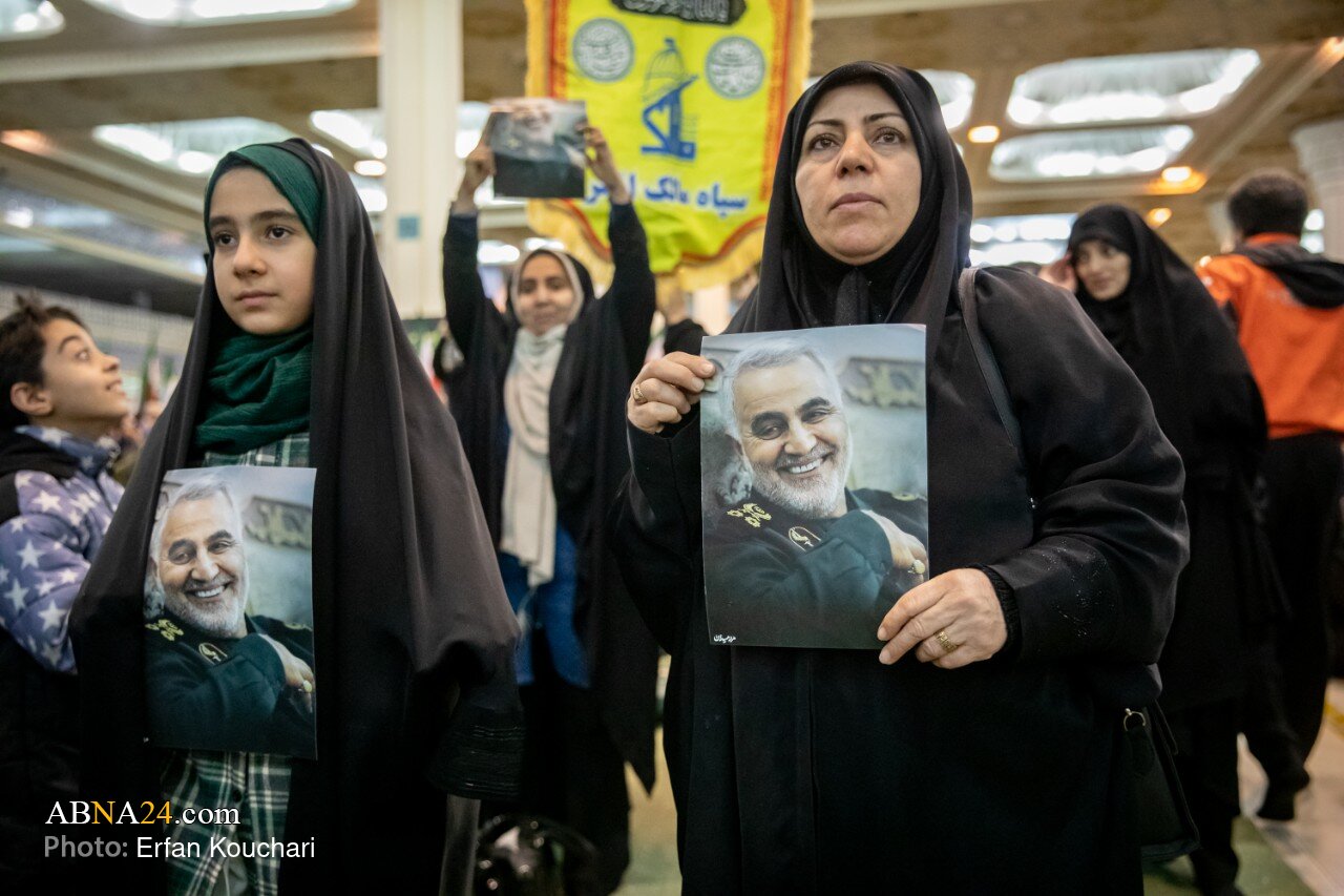 مراسم گرامیداشت ششمین سالگرد شهادت سپهبد حاج قاسم سلیمانی، پنجشنبه (۱۱ دی ماه ۱۴۰۴) با حضور خانواده شهید سلیمانی، برخی مسئولان سیاسی و نظامی و هزاران نفر از اقشار مختلف مردم در مصلی تهران برگزار شد.