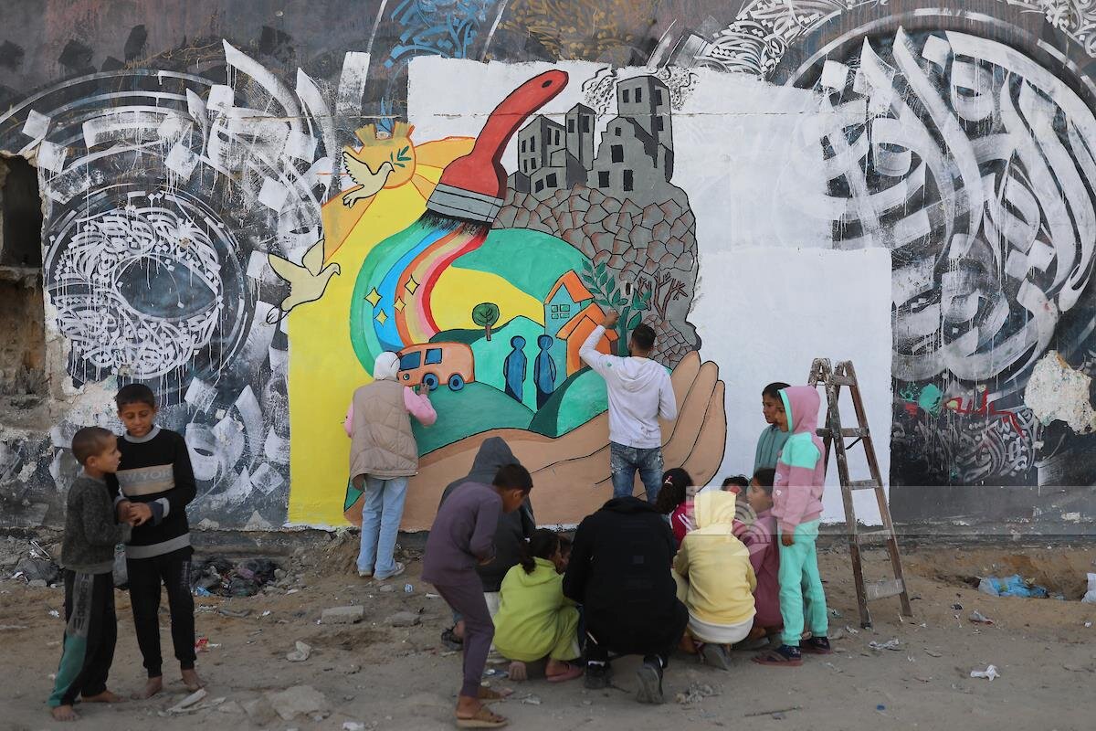 به گزارش خبرگزاری بین‌المللی اهل‌بیت(ع) ـ ابنا ـ جمعی از هنرمندان غزه با اجرای دیوارنگاره‌ای با عنوان «از ویرانه تا زندگی» بر دیوارهای دانشگاه الازهر، پیام مقاومت، امید و پایداری را به تصویر کشیدند.