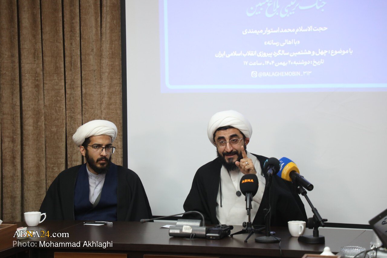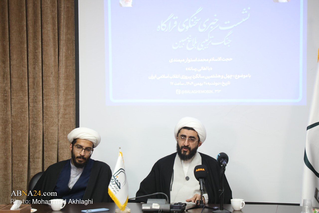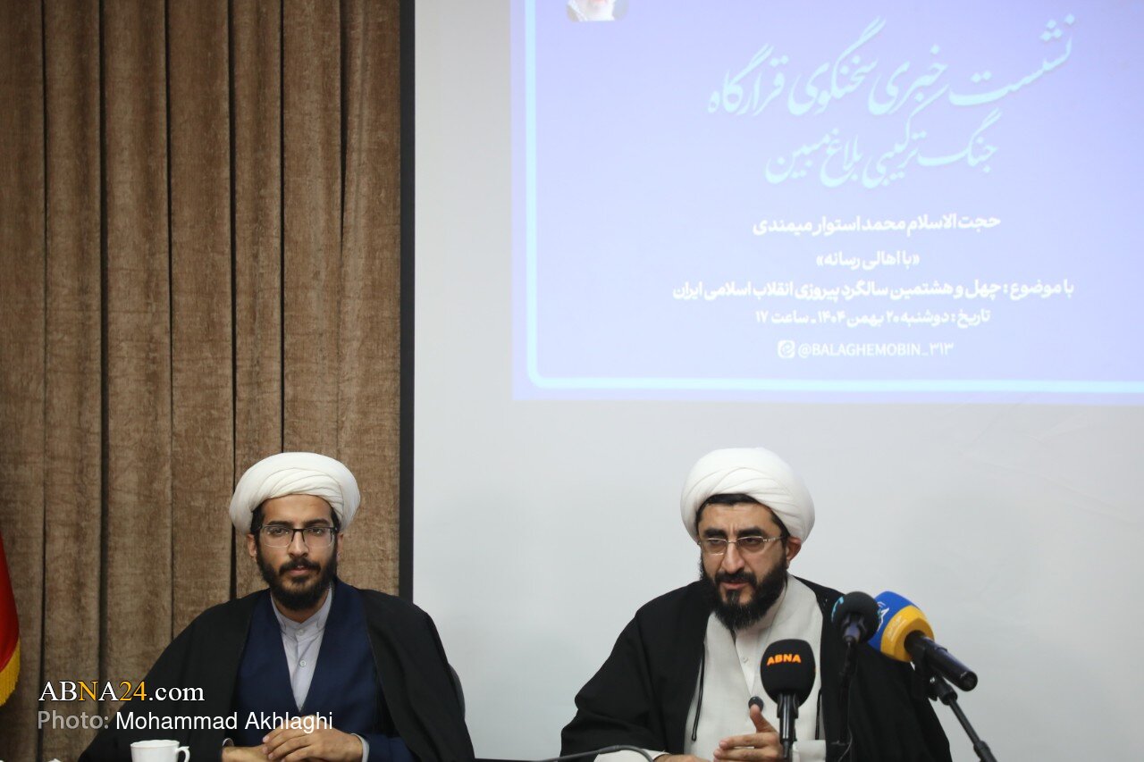 نشست خبری سخنگوی قرارگاه جنگ ترکیبی بلاغ مبین عصر دوشنبه (۲۰ بهمن ۱۴۰۴) با حضور حجت‌الاسلام محمد استوار میمندی و جمعی از اهالی رسانه در سالن جلسات علامه طباطبایی مرکز رسانه و فضای مجازی حوزه برگزار شد.