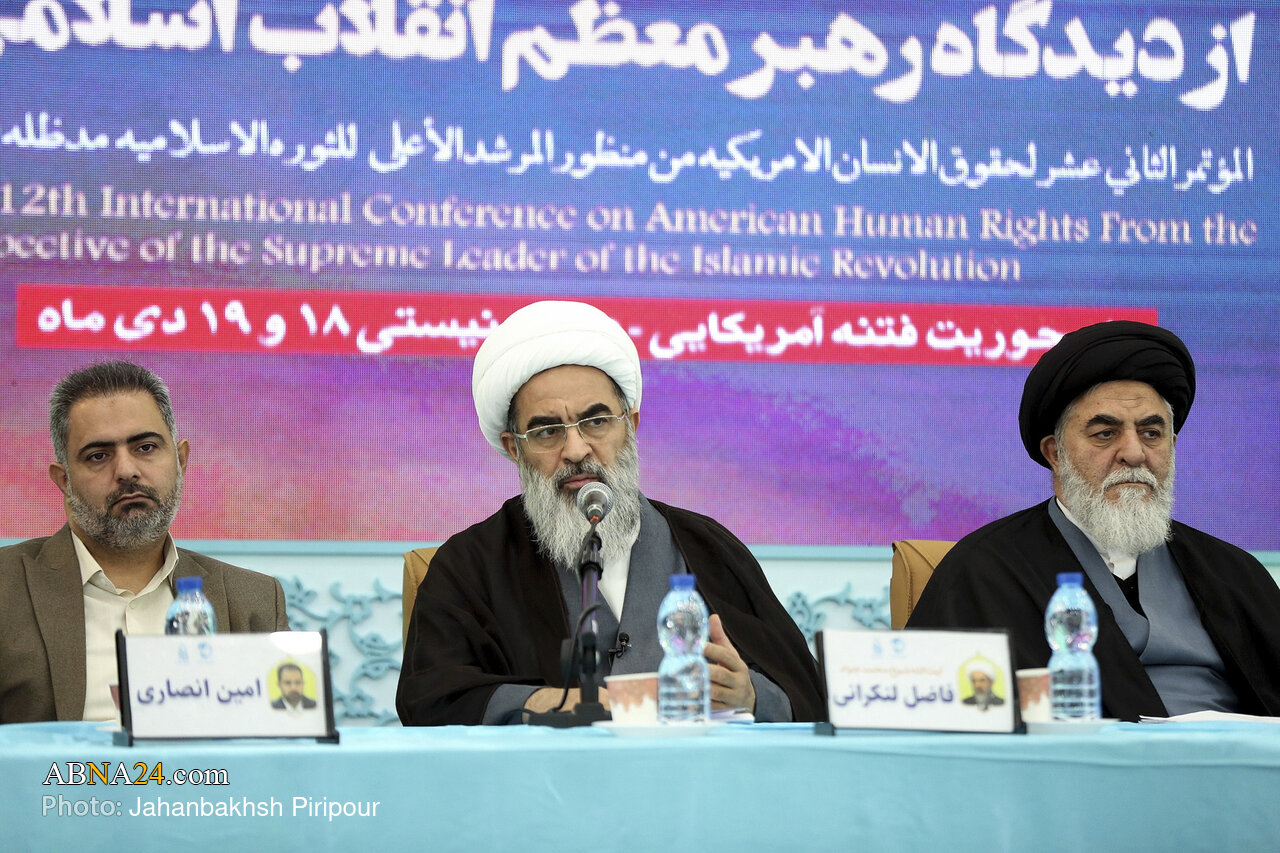 دوازدهمین کنفرانس بینالمللی «حقوق بشر آمریکایی از دیدگاه رهبر معظم انقلاب اسلامی» با محوریت «فتنه آمریکایی ـ صهیونیستی» صبح امروز چهارشنبه (۲۹ بهمن ۱۴۰۴) به همت سازمان جوانان حقوق بشر جمهوری اسلامی ایران و با مشارکت مسجد مقدس جمکران در شبستان بقیع آستان مقدس مسجد جمکران برگزار شد.