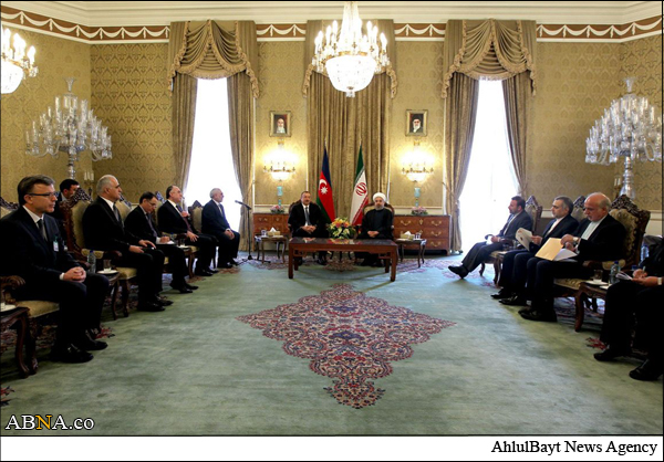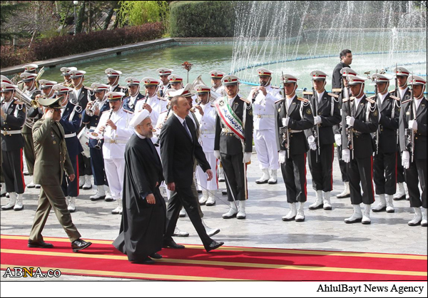 به گزارش خبرگزاری اهلبیت(ع) ـ ابنا ـ رییس جمهوری اسلامی ایران صبح امروز (چهارشنبه) در مجموعه سعد آباد از الهام علی اف رییس جمهوری آذربایجان به طور رسمی استقبال کرد. با حضور حجت الاسلام والمسلمین دکتر حسن روحانی و الهام علی اف سه یادداشت تفاهم و یک موافقتنامه همکاری میان دو کشور به امضاء مسئولان عالیرتبه ایران و آذربایجان رسید.