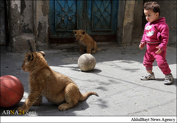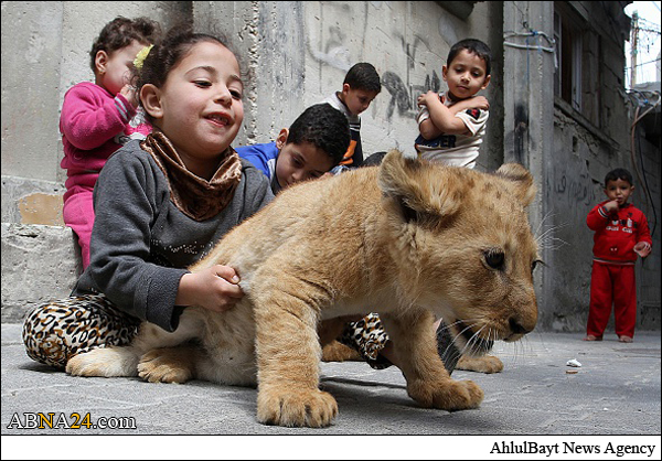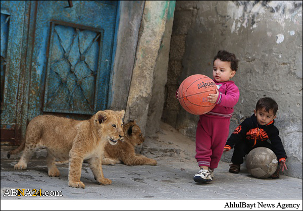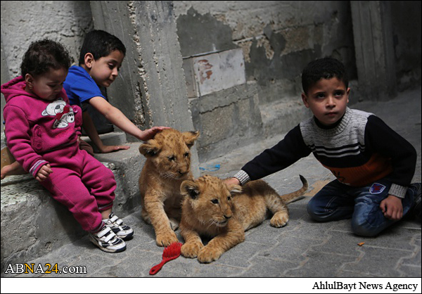 به گزارش خبرگزاری اهلبیت(ع) ـ ابنا ـ دهها کودک فلسطینی که خانههای خود را طی حملات اخیر رژیم صهیونیستی از دست دادهاند با خانوادههای خود در اردوگاه آوارگان رفح در جنوب نوار غزه زندگی میکنند. این کودکان این روزها به تولههای شیر که فردی به نام «جمال» سه ماه پیش از باغ وحش خریده است بازی میکنند.