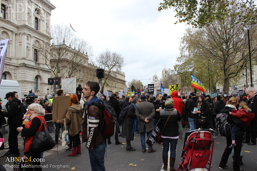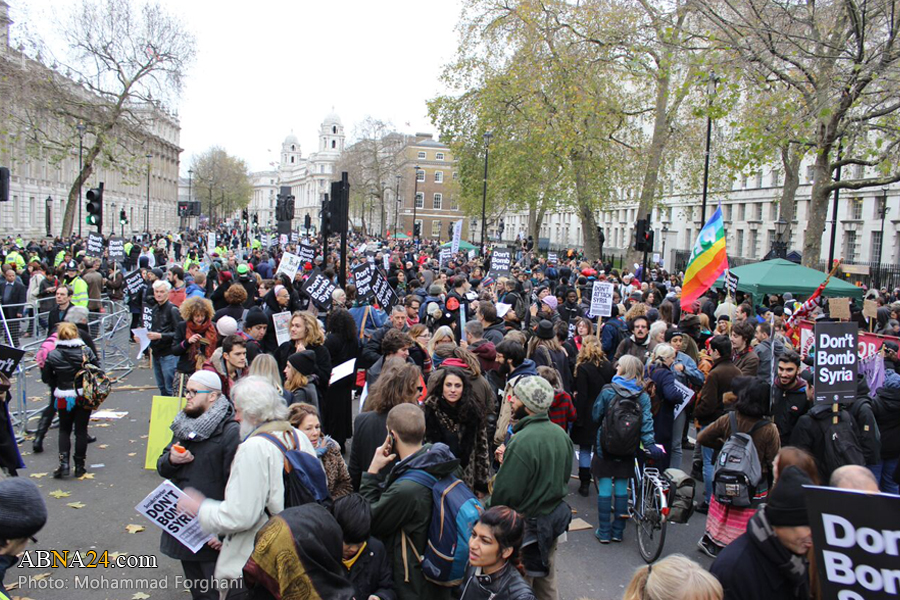 به گزارش خبرگزاری اهلبیت(ع) ـ ابنا ـ هزاران انگلیسی به منظور مخالفت با تصمیم دولت محافظه کار بریتانیا برای مشارکت در عملیات بمباران هوایی داعش، ظهر روز شنبه دست به تجمعی گسترده و اعتراضی زدند.