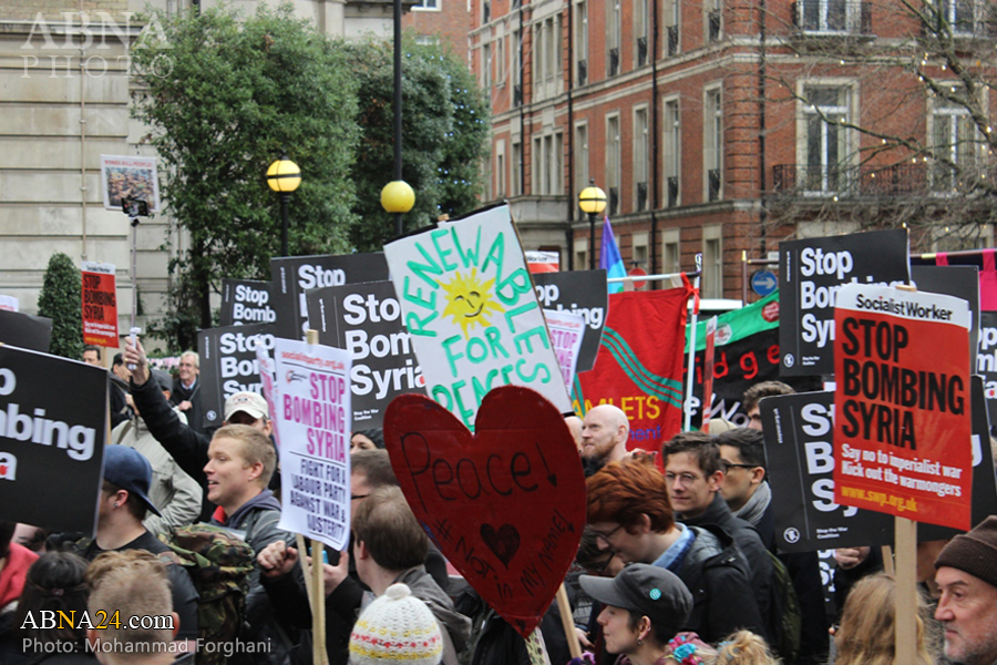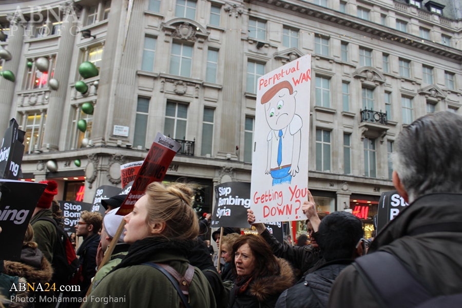 به گزارش خبرگزاری اهلبیت(ع) ـ ابنا ـ درحالیکه دولت محافظهکار انگلیس همچنان به بمباران خود در سوریه ادامه میدهد، مردم بریتانیا در یک تجمع و راهپیمایی بزرگ در خیابانهای مرکزی لندن علیه سیاستهای دیوید کامرون در خاورمیانه فریاد اعتراض سردادند، همچنین مردم با تجمع در مقابل ساختمان مرکزی بیبی سی نسبت به سیاستهای جانب دارانه این رسانه اعتراض کرده و آن را عامل تبلیغاتی سیاستهای نظامی دولت انگلیس خواندند.