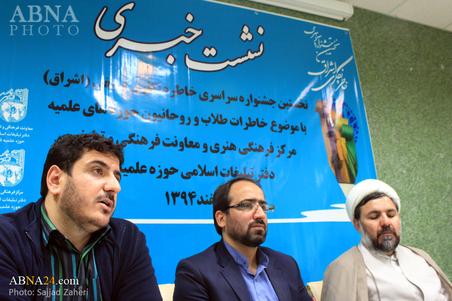 به گزارش خبرگزاری اهل بیت(ع) ـ ابنا ـ نشست خبری جشنواره خاطره نگاری اشراق با حضور «حجت الاسلام و المسلمین روستا آزاد» معاون فرهنگی تبلیغی دفتر تبلیغات اسلامی و «محمد حسنی» رییس مرکز فرهنگی هنری دفتر تبلیغات اسلامی در قم برگزار شد.