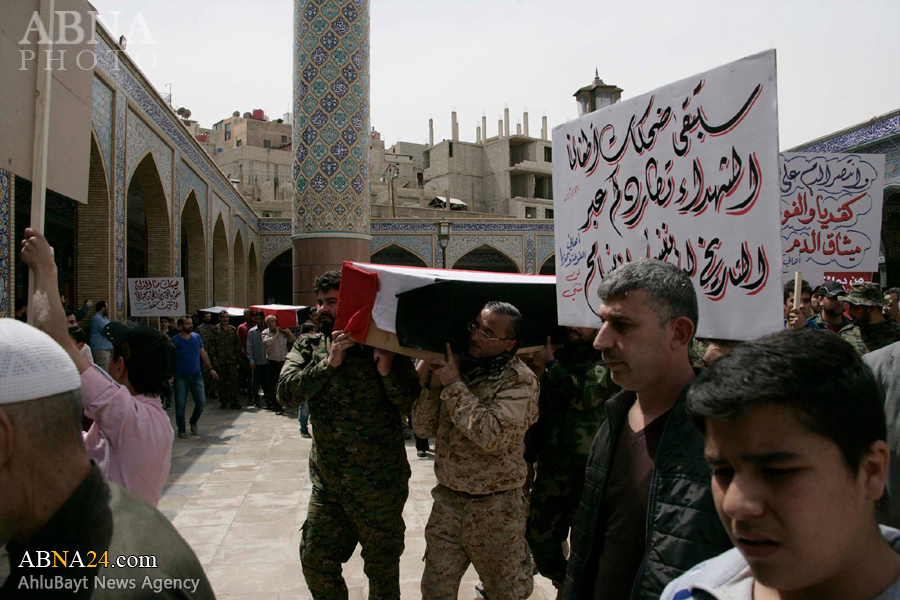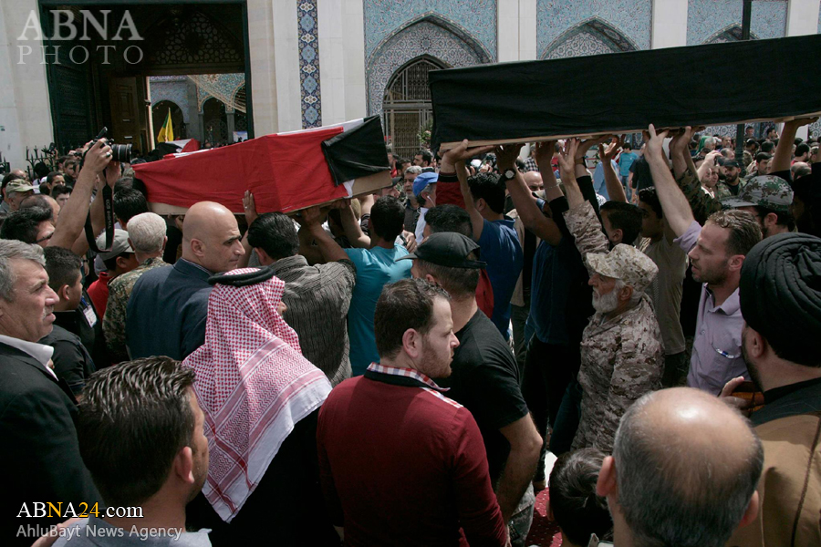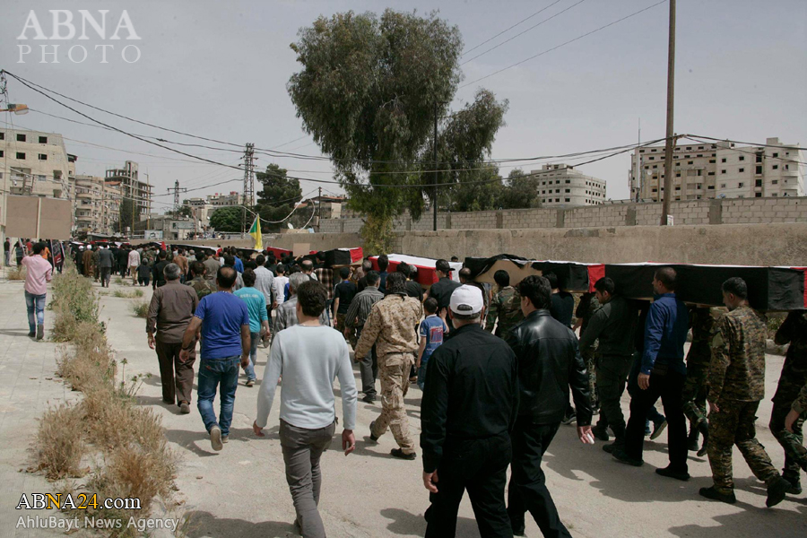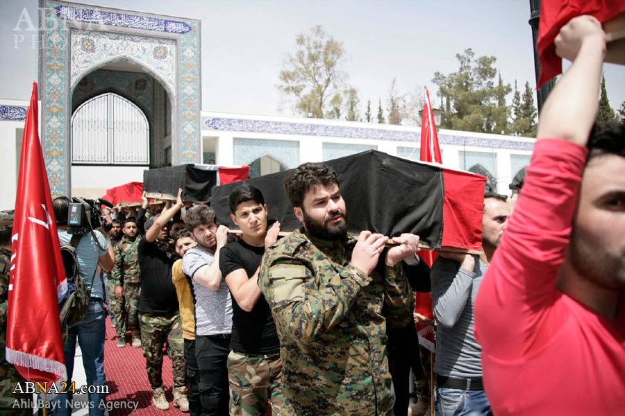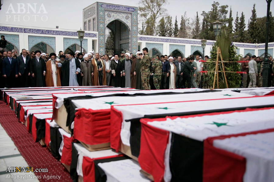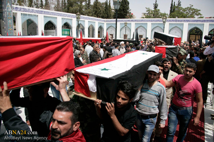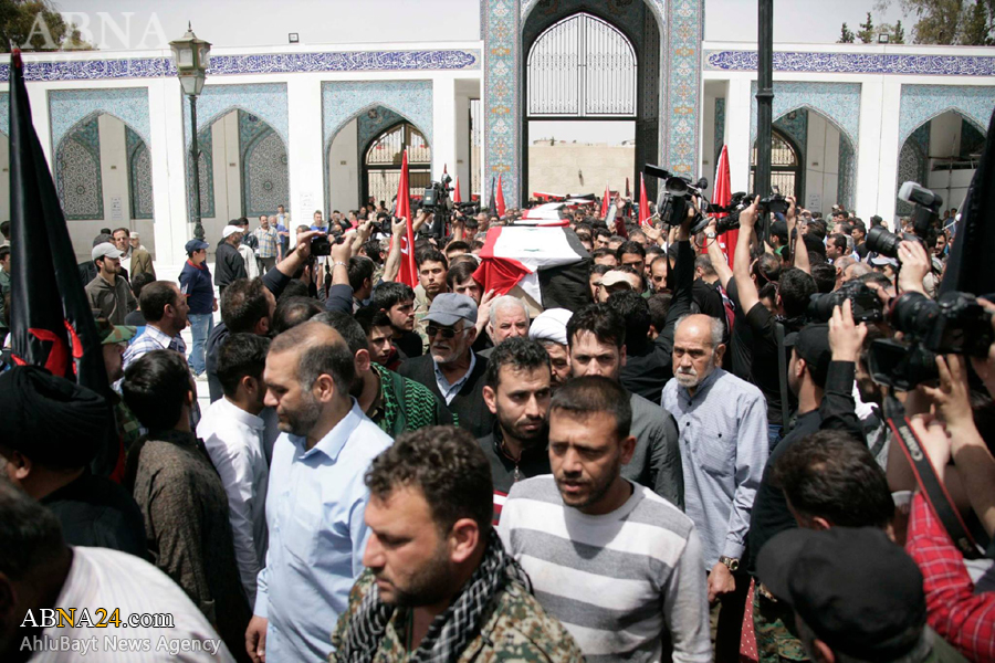 به گزارش خبرگزاری اهلبیت(ع) ـ ابنا ـ پیکر 52 شهید جنایت هولناک و تروریستی الراشدین حلب پس از تشییع در حرم حضرت زینب (س) در گلزار شهدای منطقه زینبیه دمشق به خاک سپرده شد. چند روز پیش یک انفجار خودروی بمب گذاری در میان اهالی شهرهای شیعه نشین فوعه و کفریا در منطقه الراشدین، صدها شهید و مجروح برجای گذاشت.