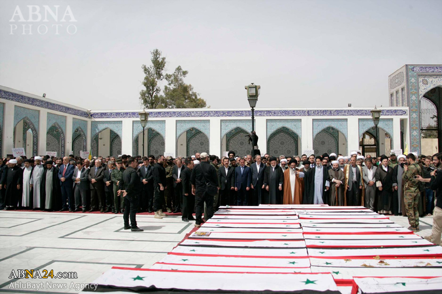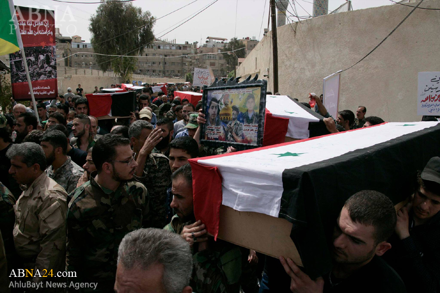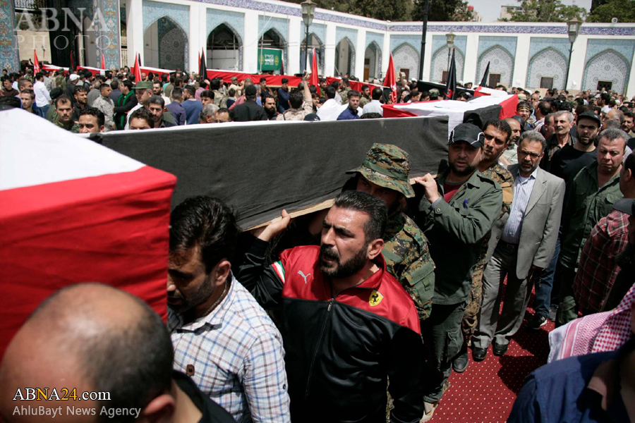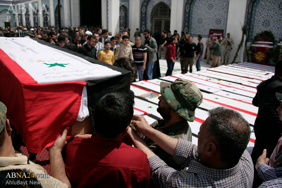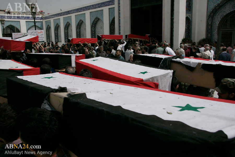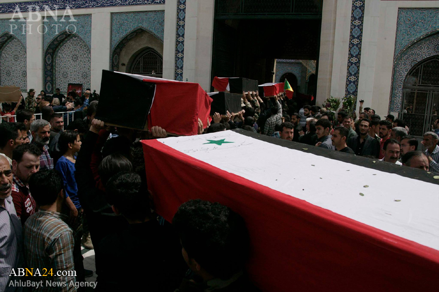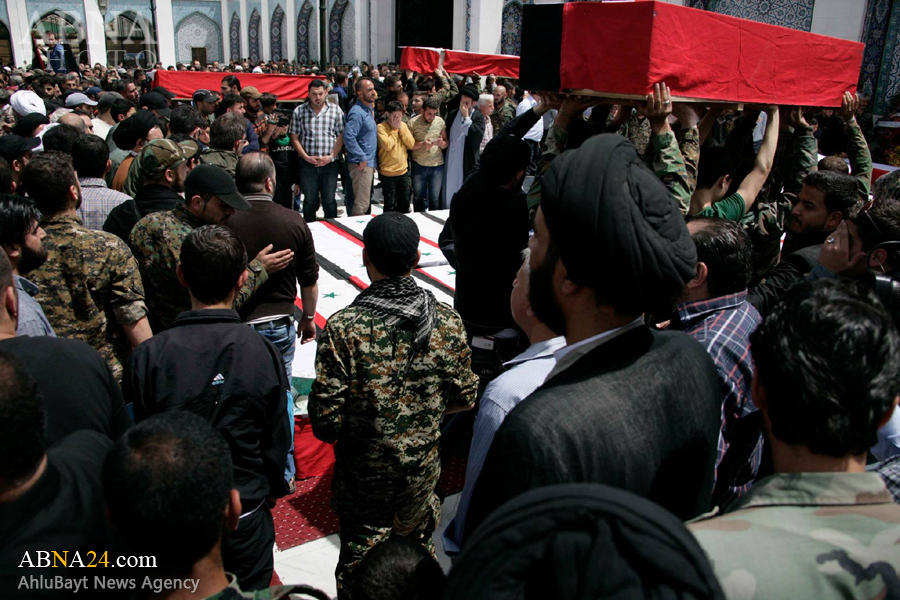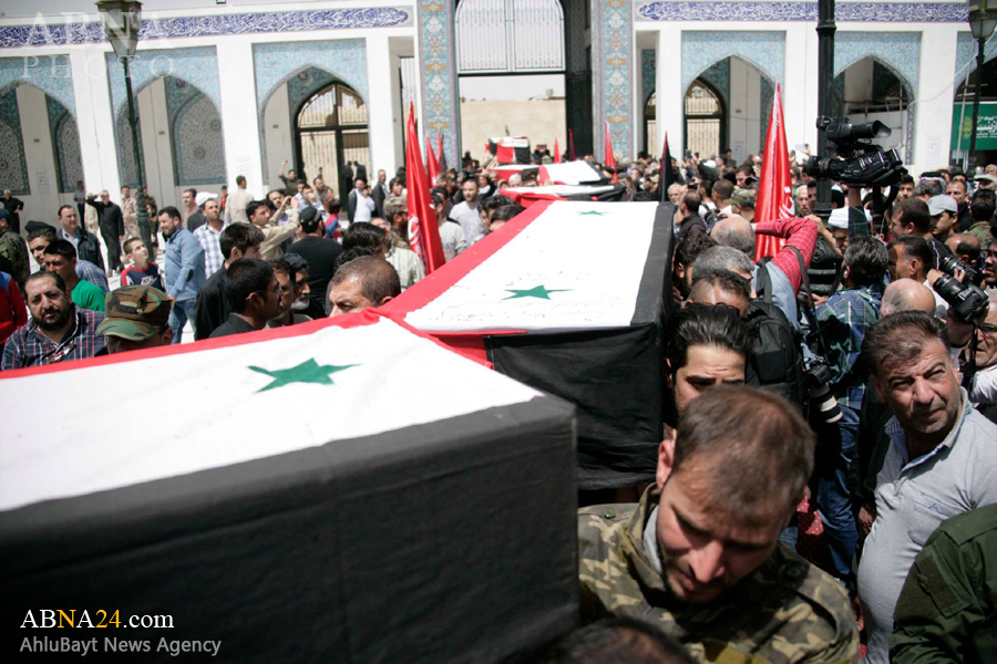 به گزارش خبرگزاری اهلبیت(ع) ـ ابنا ـ پیکر 52 شهید جنایت هولناک و تروریستی الراشدین حلب پس از تشییع در حرم حضرت زینب (س) در گلزار شهدای منطقه زینبیه دمشق به خاک سپرده شد. چند روز پیش یک انفجار خودروی بمب گذاری در میان اهالی شهرهای شیعه نشین فوعه و کفریا در منطقه الراشدین، صدها شهید و مجروح برجای گذاشت.
