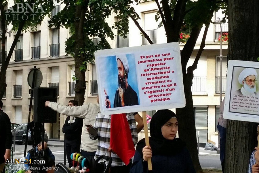به گزارش خبرگزاری اهل بیت(ع) ـ ابنا ـ تعدادی از مسلمانان روزه دار و آزادی خواه در اعتراض به جنایت اخیر آل خلیفه در حمله به منزل آیت الله عیسی قاسم و در حمایت از این عالم برجسته در نزدیکی سفارت بحرین در پاریس تجمع کردند.
